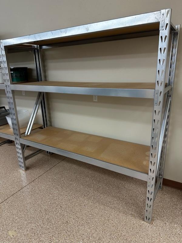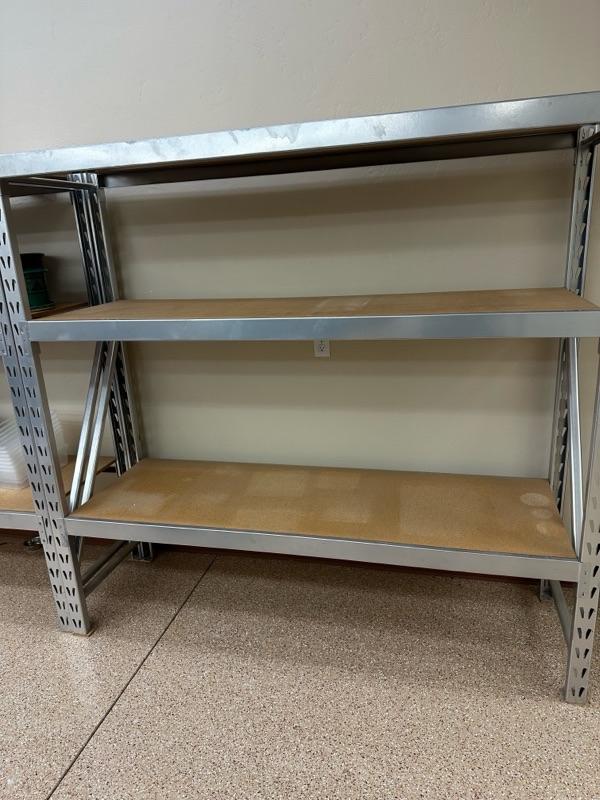 Lot 889 heavy duty metal and wood storage shelves