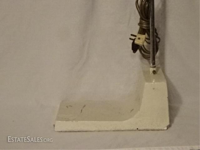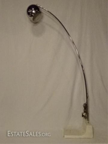 LOT 88A: 1970's VINTAGE CHROME FLOOR LAMP, WHITE FINISH WOOD BASE, GOOD VINTAGE CONDITION WITH SOME LOSS OF PAINT TO BASE, 56"H, SKU387.24