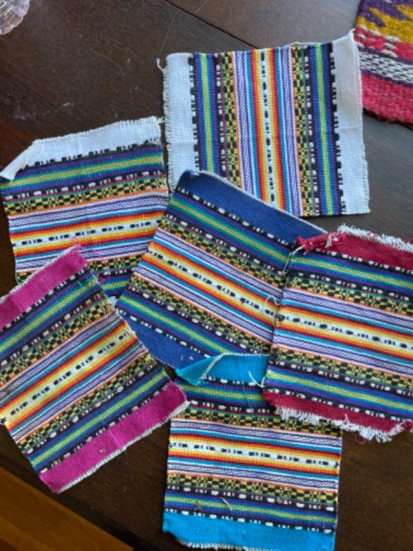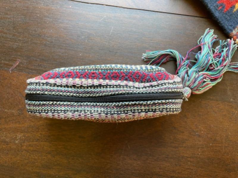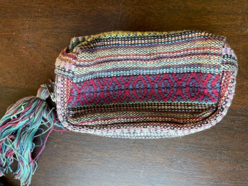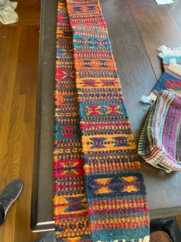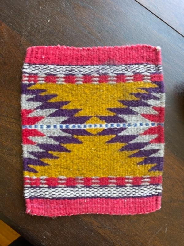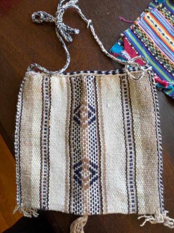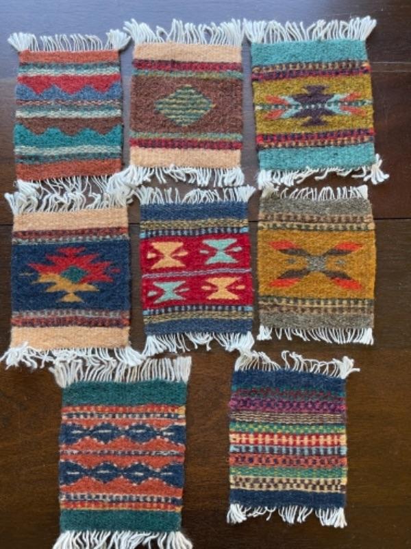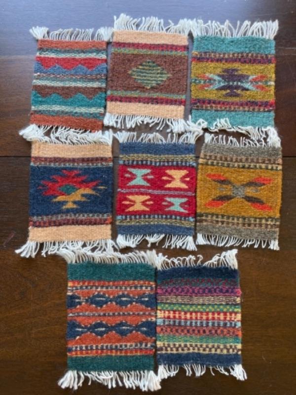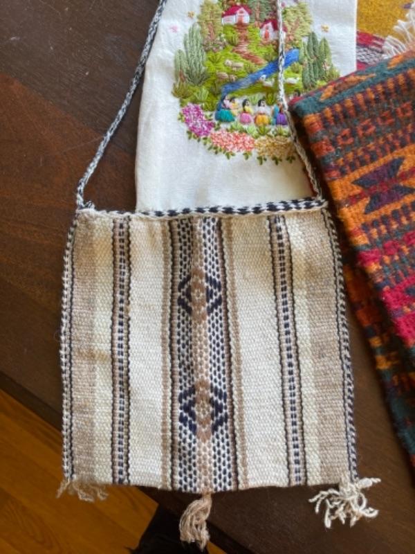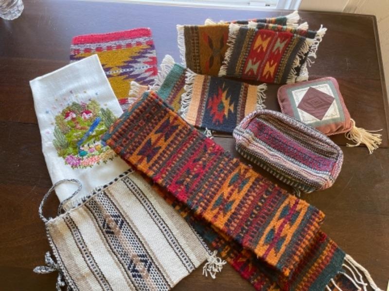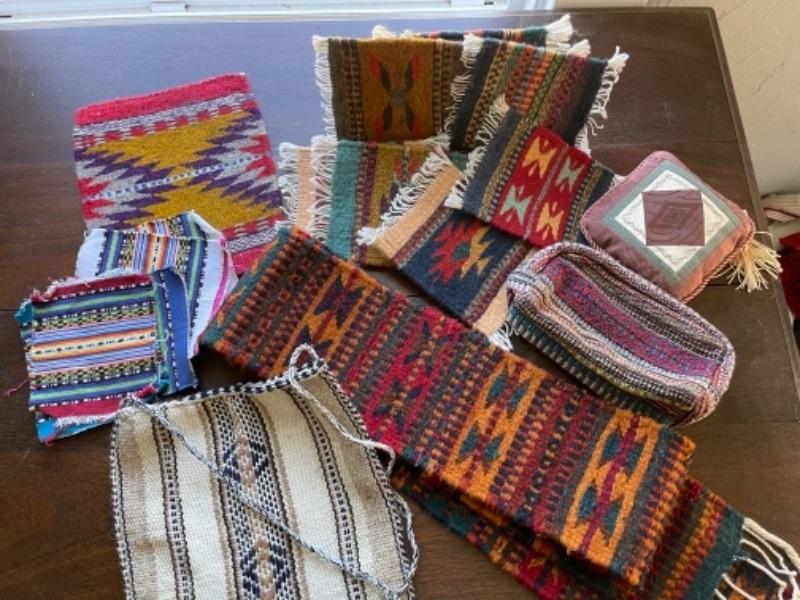 Lot 88BR. Collection of wool and cotton textiles, Mexican/ Central American, purse, squares, runner, pouch, wool coasters--$125
