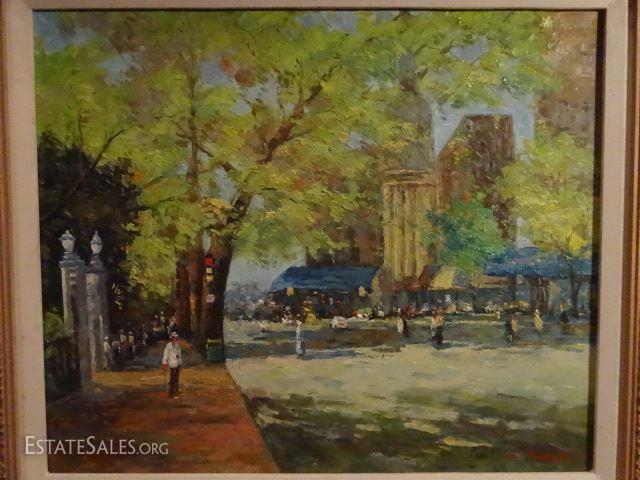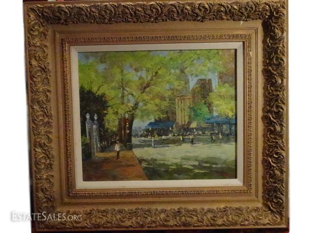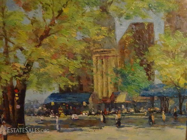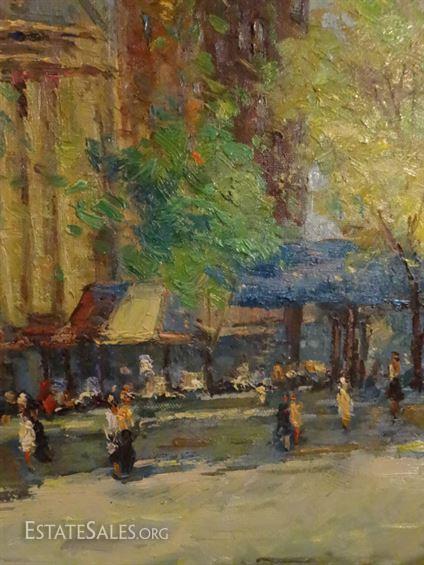 LOT 88C: LARGE OIL PAINTING ON CANVAS, PARIS STREET SCENE, SIGNED LOWER RIGHT, IN GILT WOOD FRAME, FRAMED SIZE APPROX 33"H X 37"W, SKU6147.04 H27