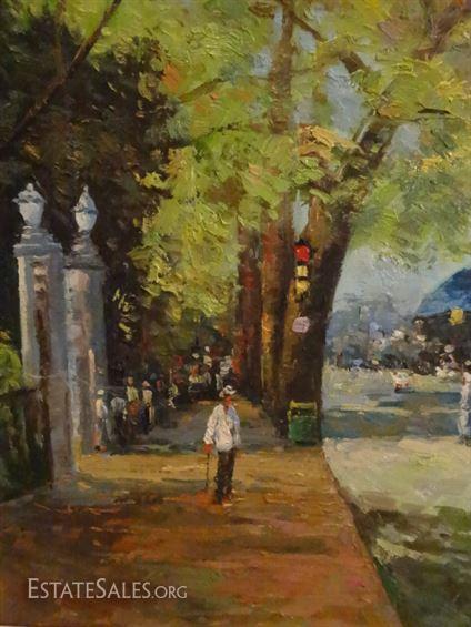 LOT 88C: LARGE OIL PAINTING ON CANVAS, PARIS STREET SCENE