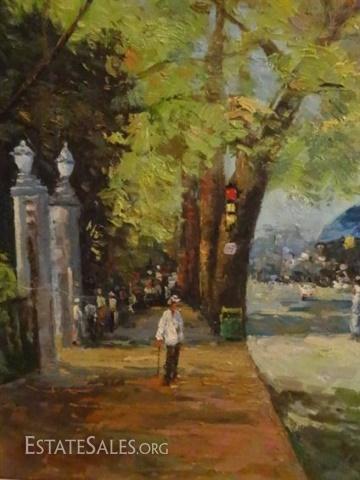 LOT 88C: LARGE OIL PAINTING ON CANVAS, PARIS STREET SCENE, SIGNED LOWER RIGHT, IN GILT WOOD FRAME, FRAMED SIZE APPROX 33"H X 37"W, SKU6147.04 H27