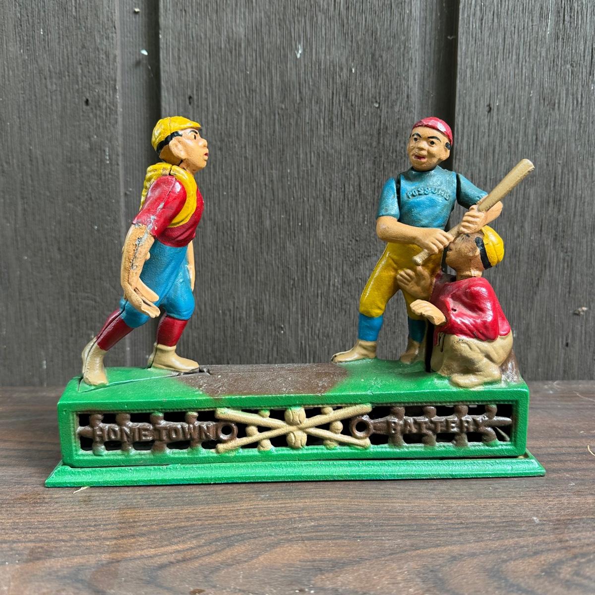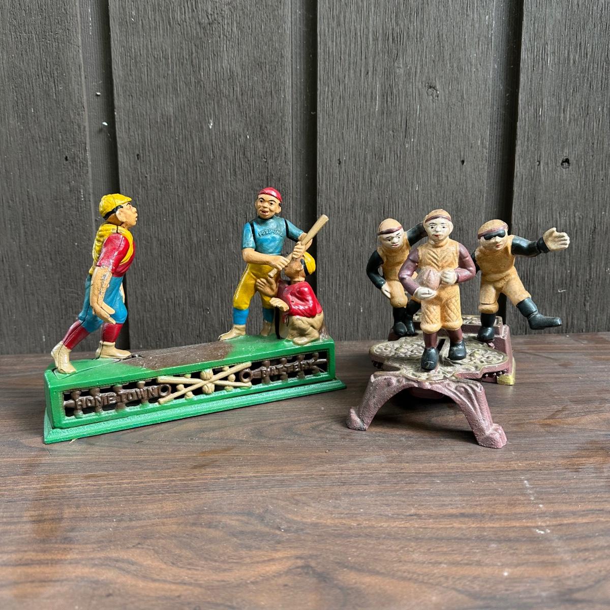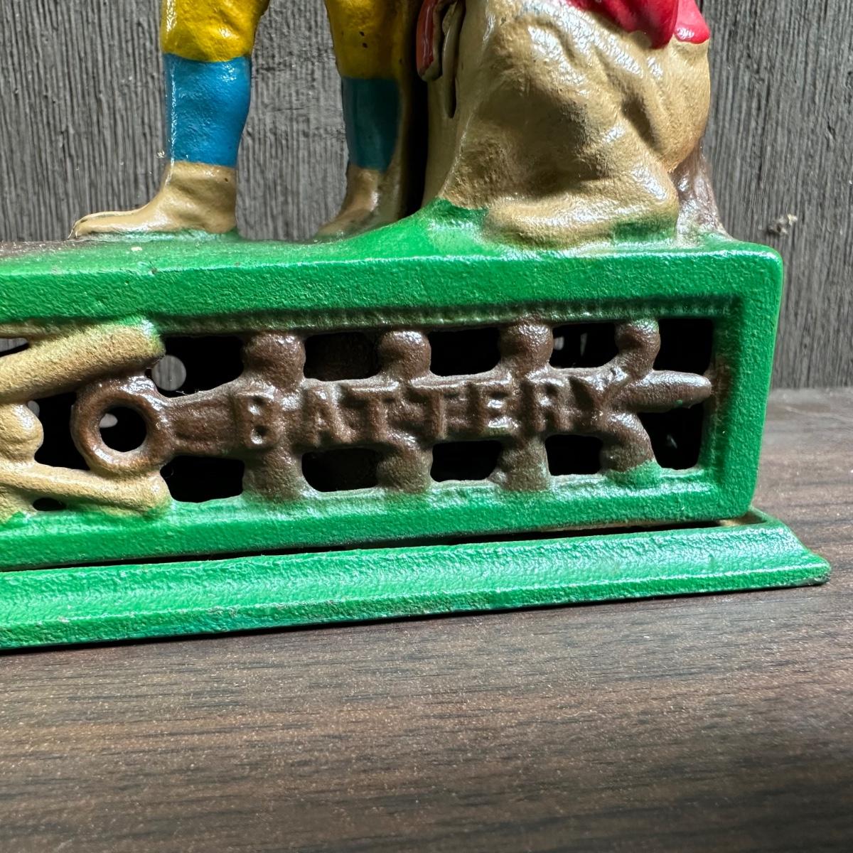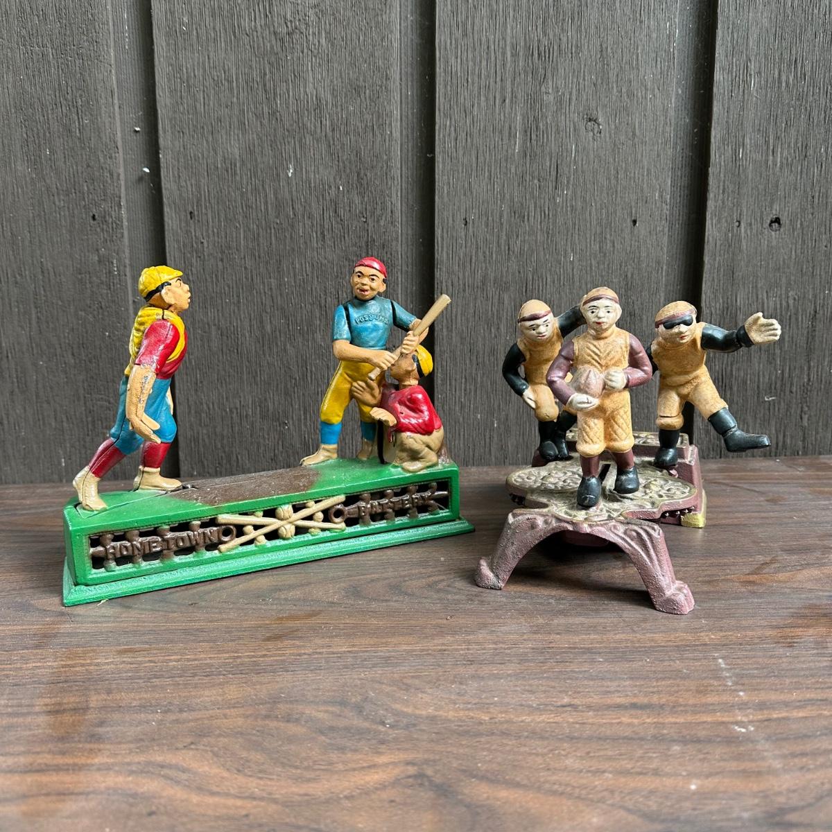 LOT 88G: Pair of Cast Iron Mechanical Banks - Hometown Battery 1889 & Vintage Rugby