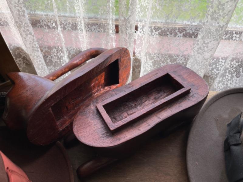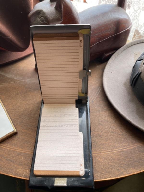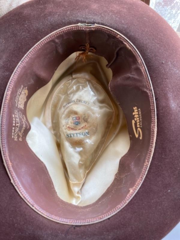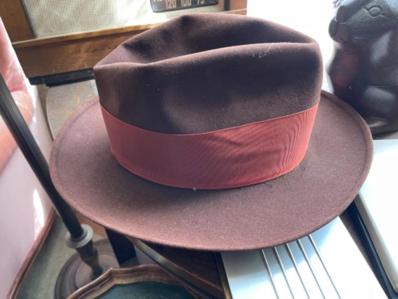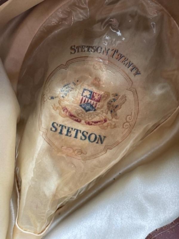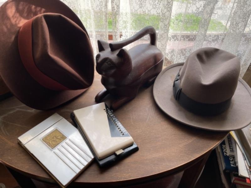 Lot 88L. Two vintage Stetson hats, size 7, vintage address directory and notebook, wooden cat container--$65