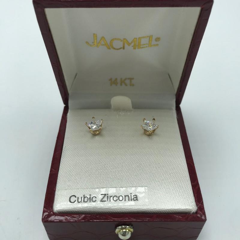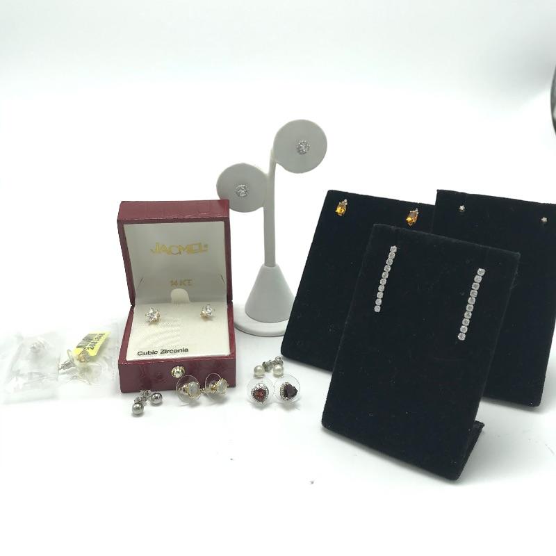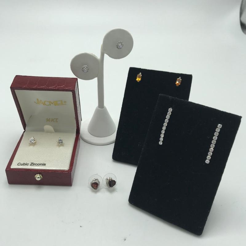 New and vintage, all tried and true! Star shaped 14K Jacmel earrings with CZ. Posts are marked JCM 14K CZ, see photos. A double pair of opal like earrings for you to share with your sister or bestie! See photos for all the stud earrings and a pair of CZ like dangles.