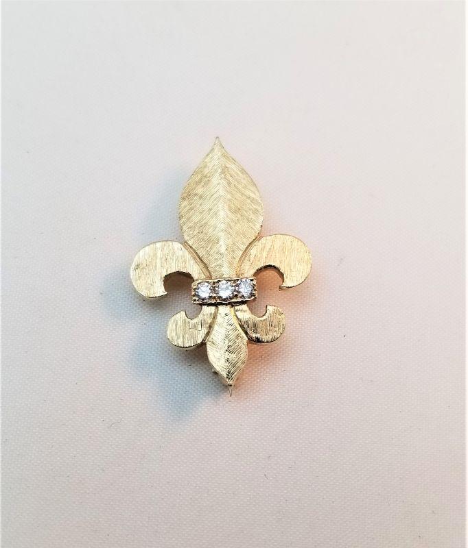 Lot #89  14kt Gold Fleur di Lis Brooch with Diamond Accents