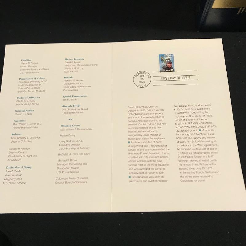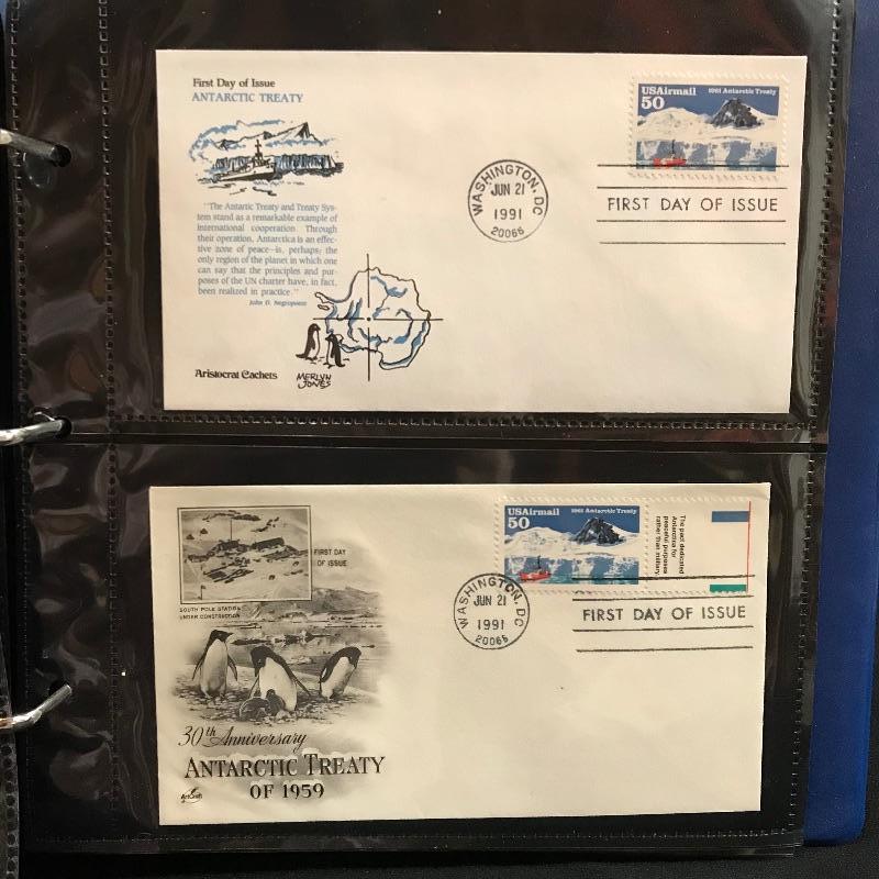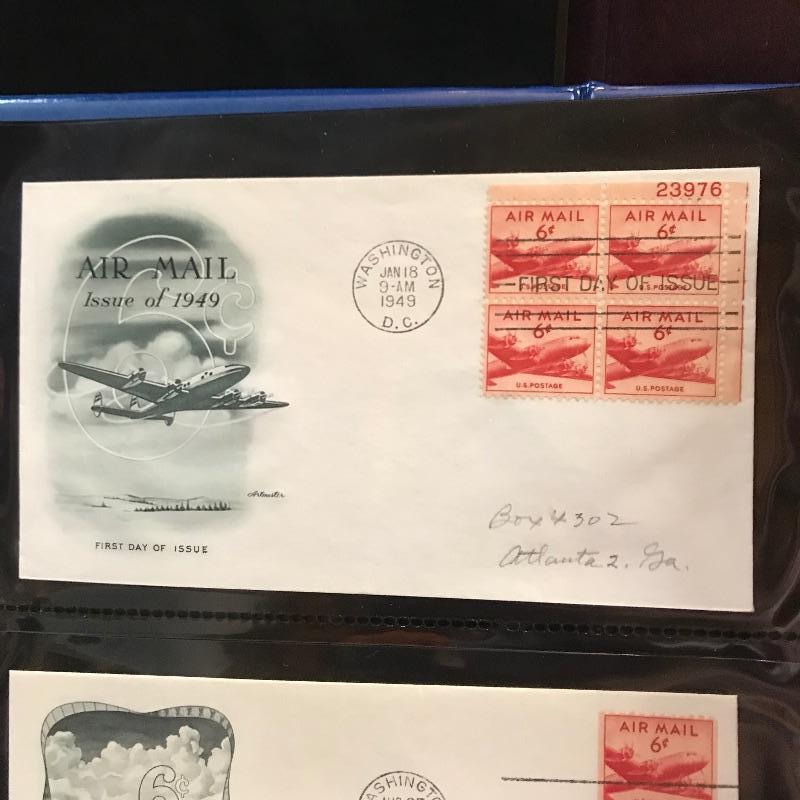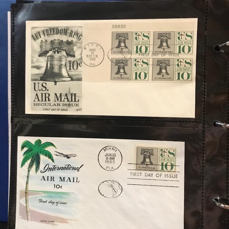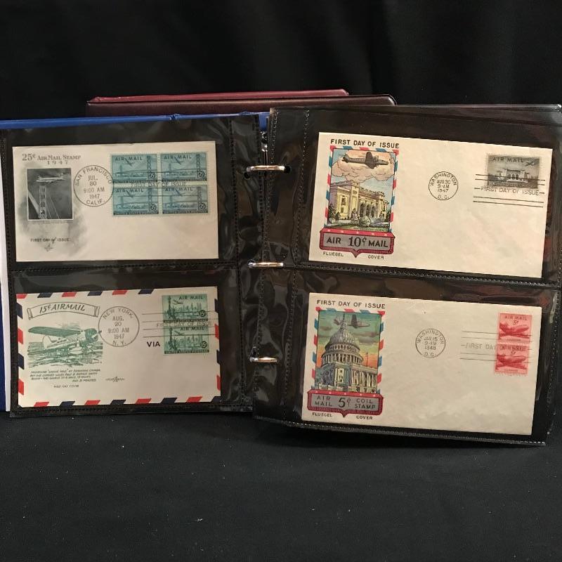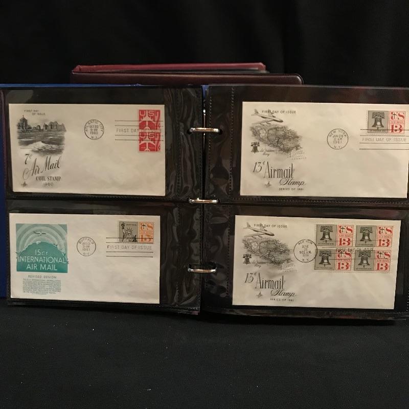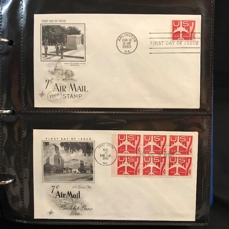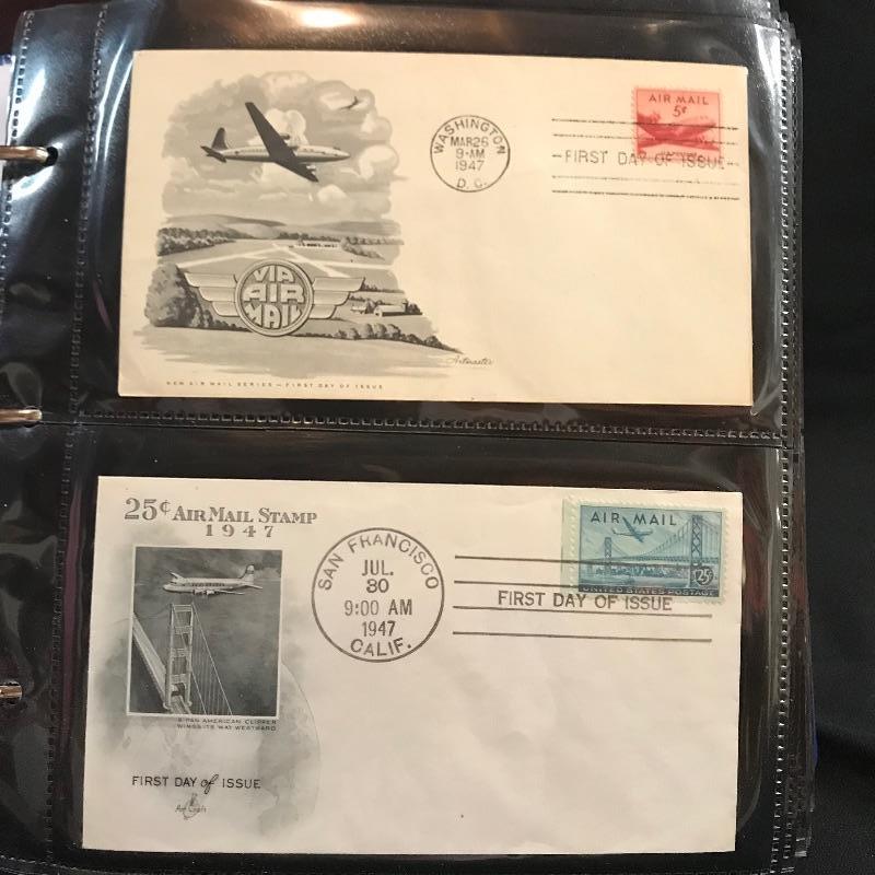 Two books with about 90 pages (mostly full, just a few blank spots) about flight. With hot air balloons, planes, pilots and more! There are a couple random 1st day covers here and there. Lot also includes ten “American Advances in Aviation” full colored first day covers - double wrapped in plastic with what looks like an artist signature.