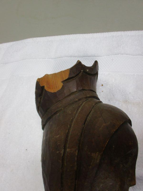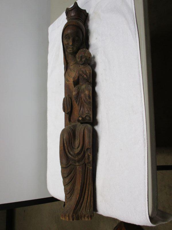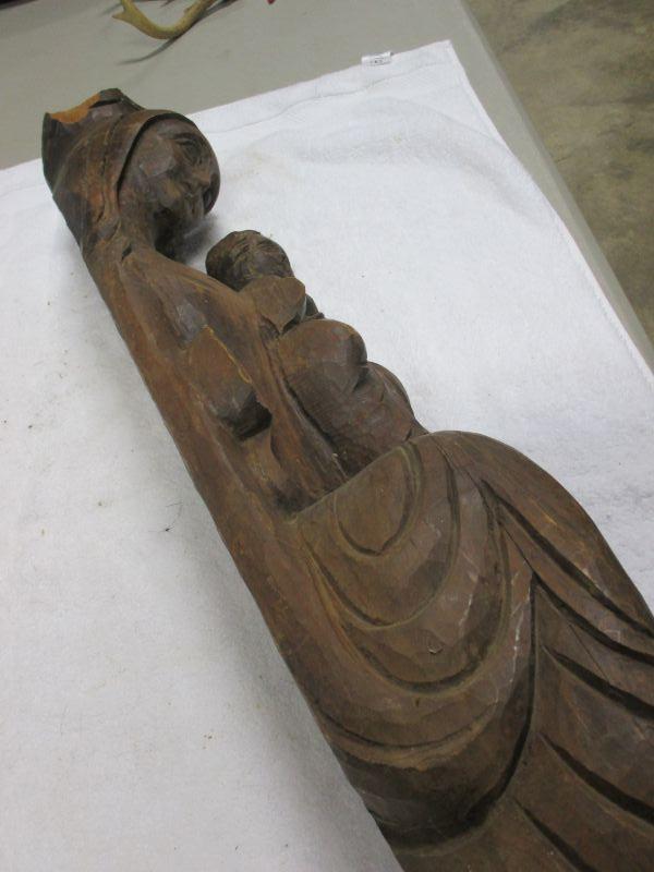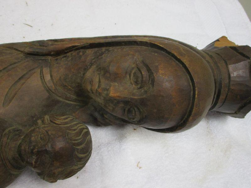 Lot 89 - Made In Spain Wood Carved Madonna and Child Statue has some damage to the wood as shown