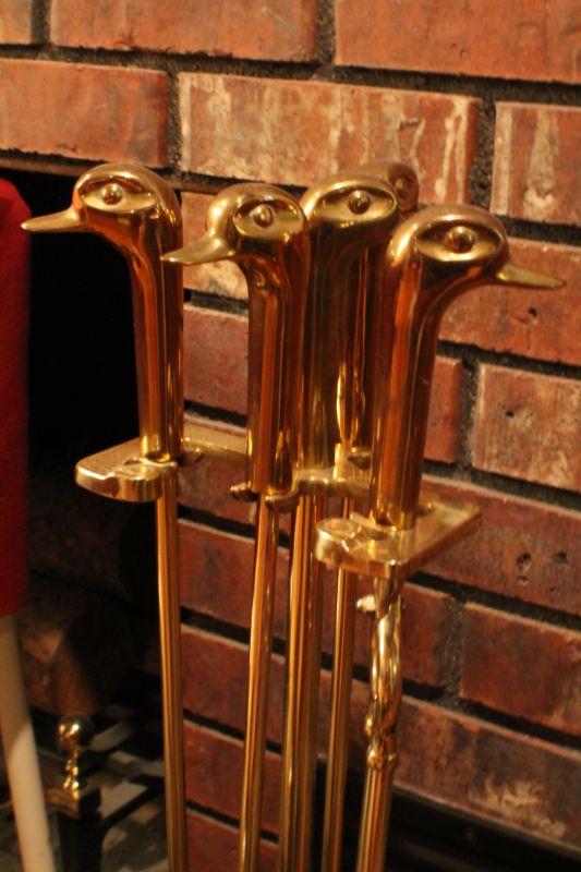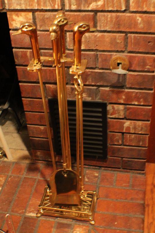 LOT #89: Vintage Heavy Brass Duck Themed Fireplace Set