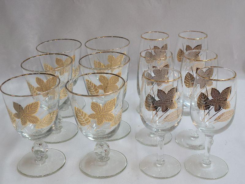 Lot 89: Mid Century Modern Gold Leaf Stemware