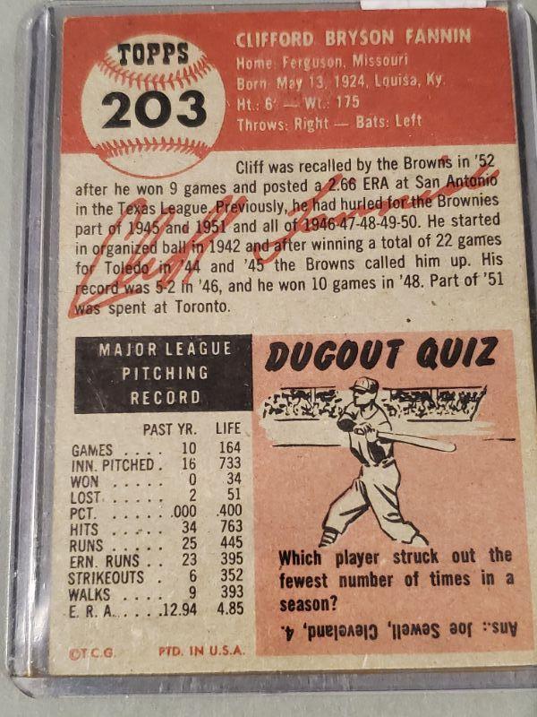 Lot 89: St. Louis Browns - Cliff Fannin Baseball Card