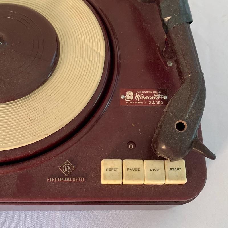 This lot includes two ELAC Miracord XA100 turntables. One comes in a metal base and has a humming sound when plugged in.