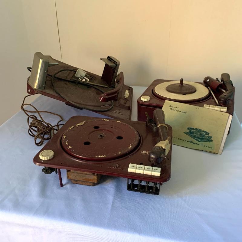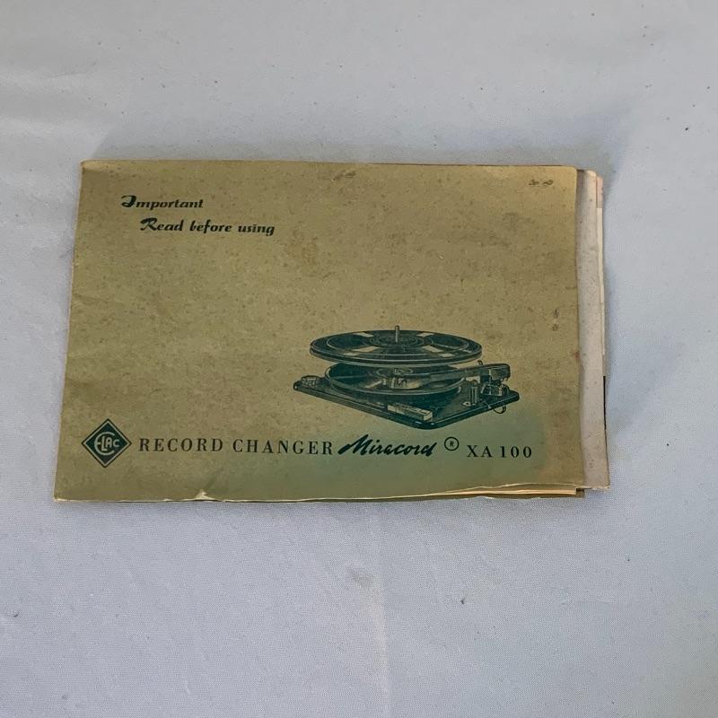 The lot includes a Miracord XA100 instruction manual and spindles.
