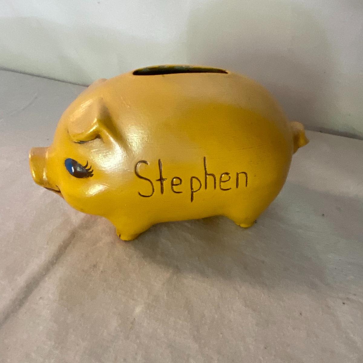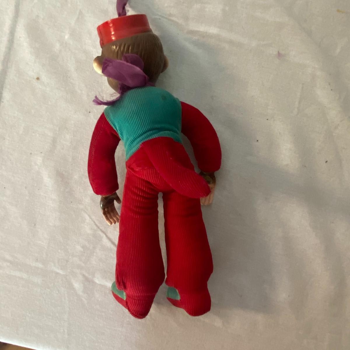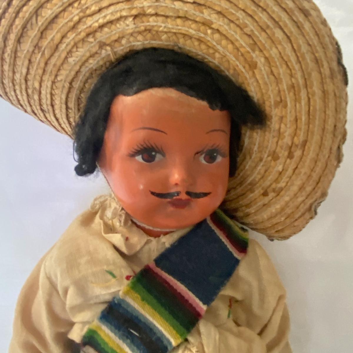 Lot includes six plush vintage dolls. See photos. Lot also includes a yellow piggy bank with the name Stephen on the outside. Doll with sombrero measures to stand approx. 20” tall. The monkey is 12” tall. See photos. Shipping Available.