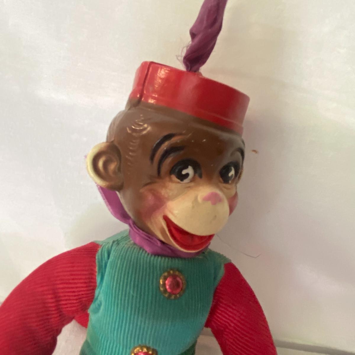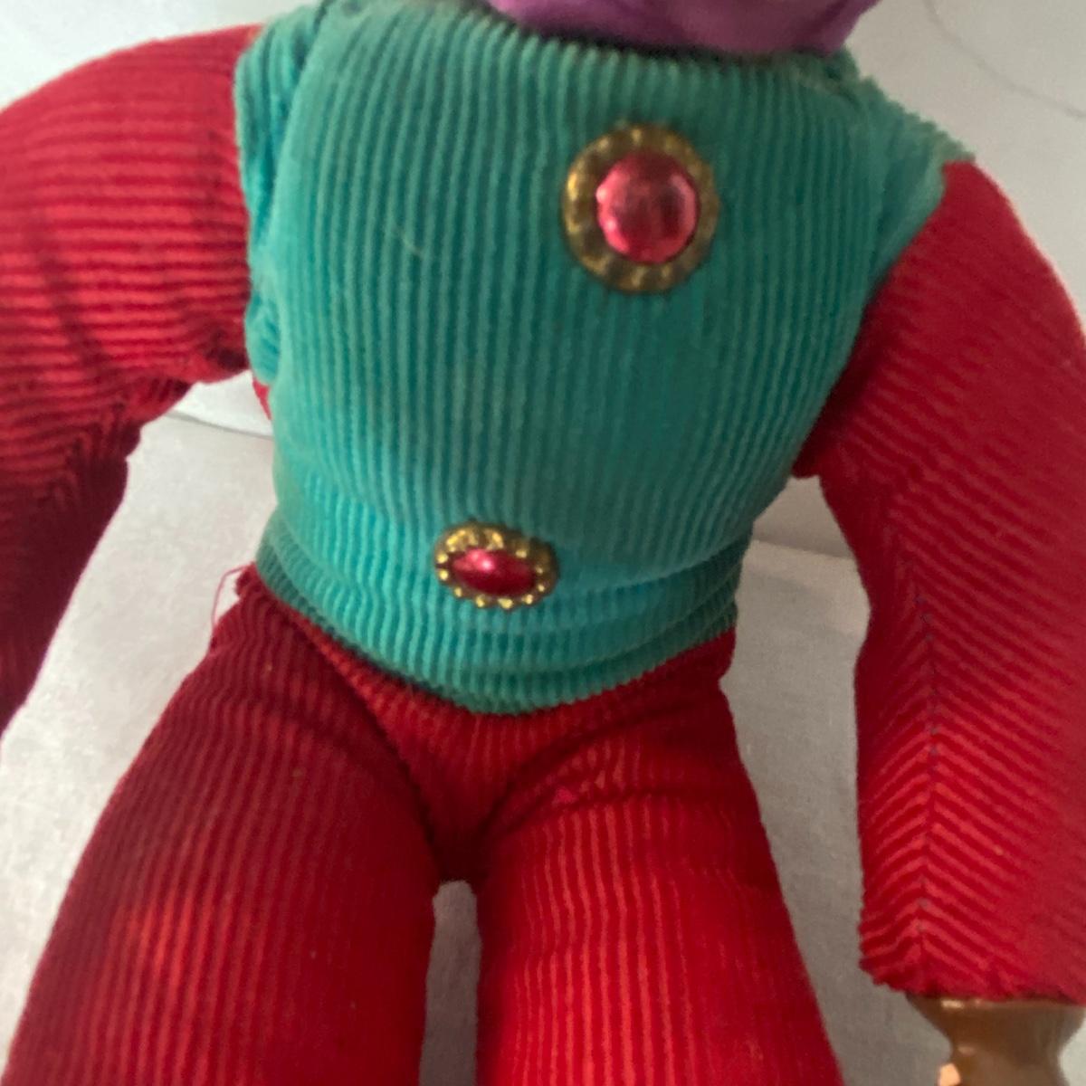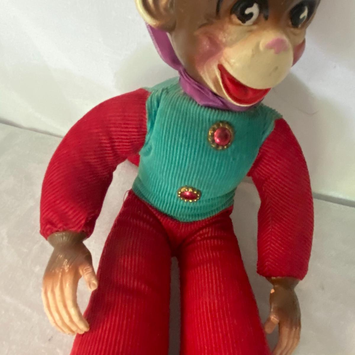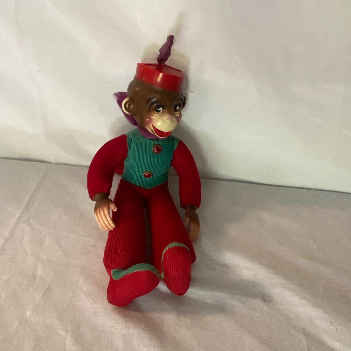 Lot includes six plush vintage dolls. See photos. Lot also includes a yellow piggy bank with the name Stephen on the outside. Doll with sombrero measures to stand approx. 20” tall. The monkey is 12” tall. See photos. Shipping Available.