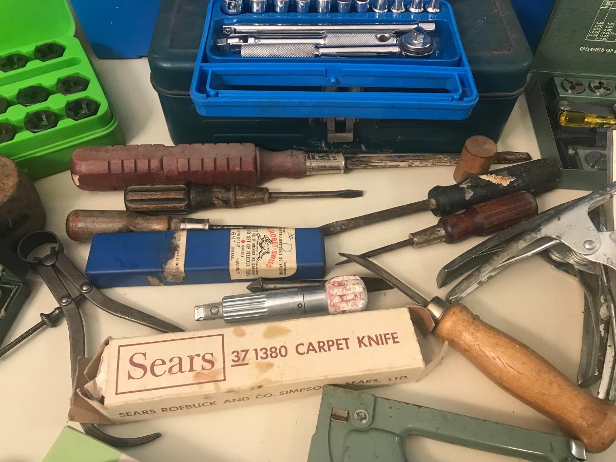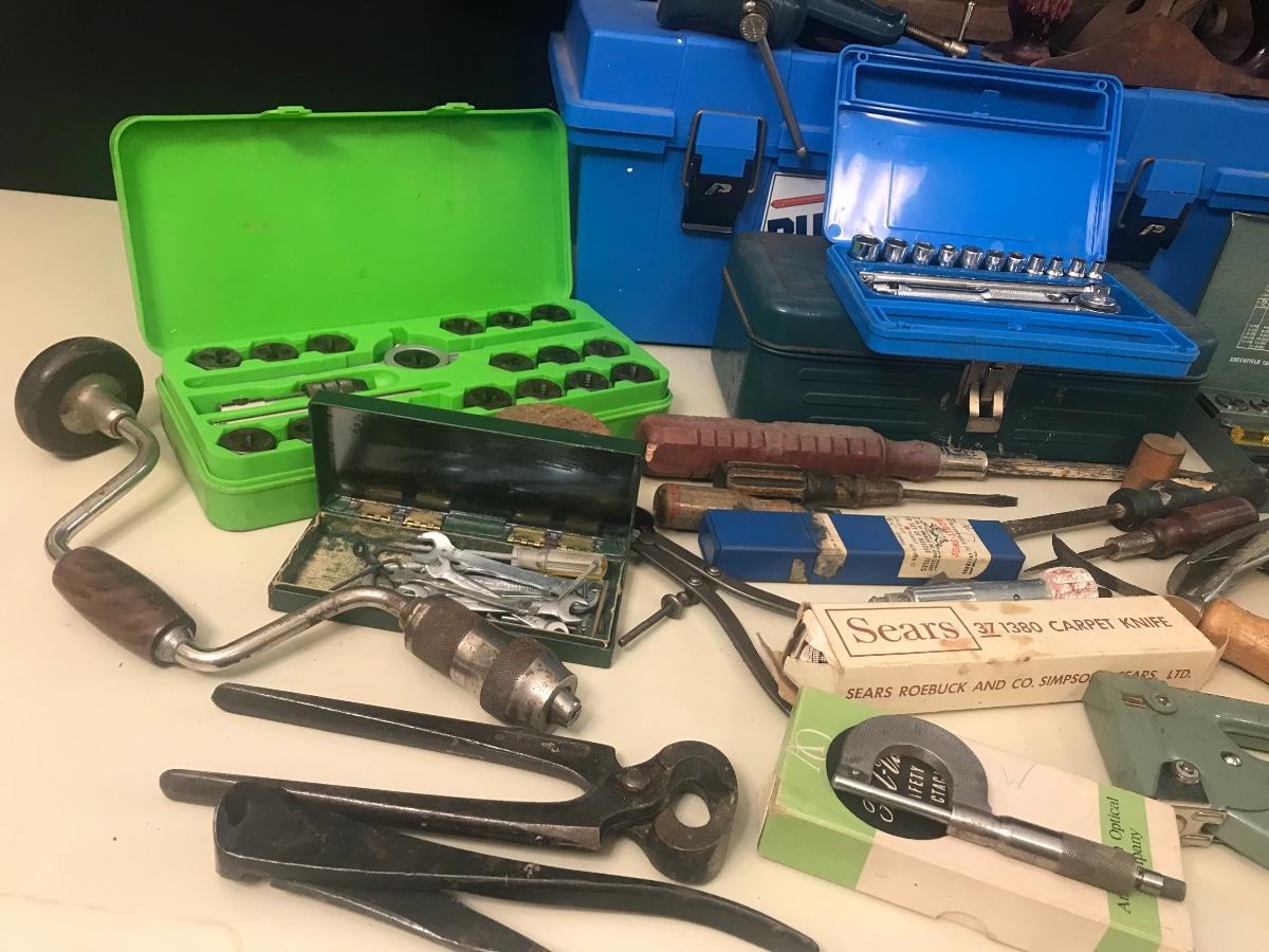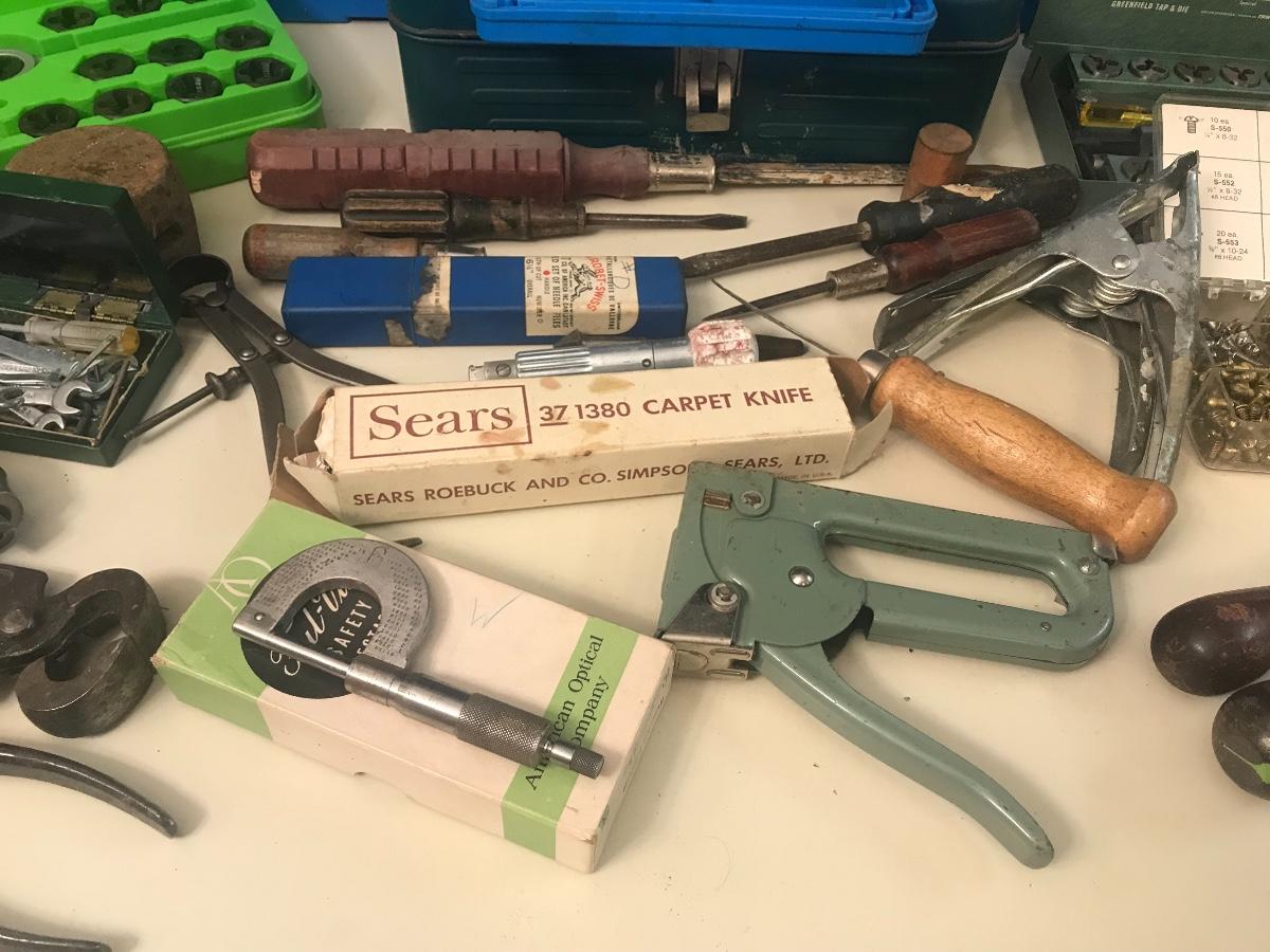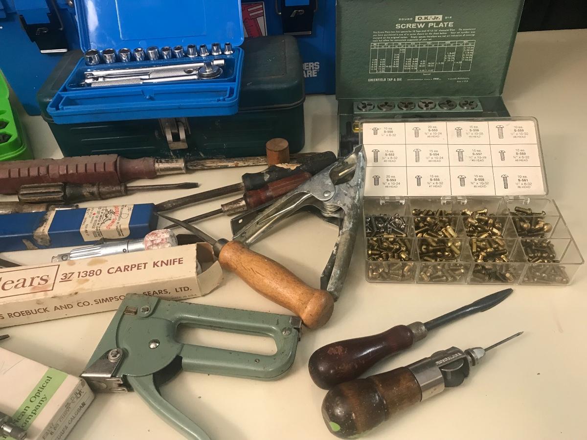 Vintage Tools - Level, Lathe, Leather Working & More. - Vintage Brown and Sharpe micrometer is in a vintage safety spectacle box - but no spectacles included. Please see all pictures as they are the best representation of the items. The pictures show condition, measurements if taken, and what is included in the lot. Due to the large amount that we photograph and the time frame, we are not always able to take measurements. All items unless noted, are pre-owned and have been used. If you purchased furniture, you must bring help. We do not allow one person to carry large furniture out on their own. Bring help, tools and a truck for the safety of our client’s homes, and your personal safety. Company policy. Thank you.