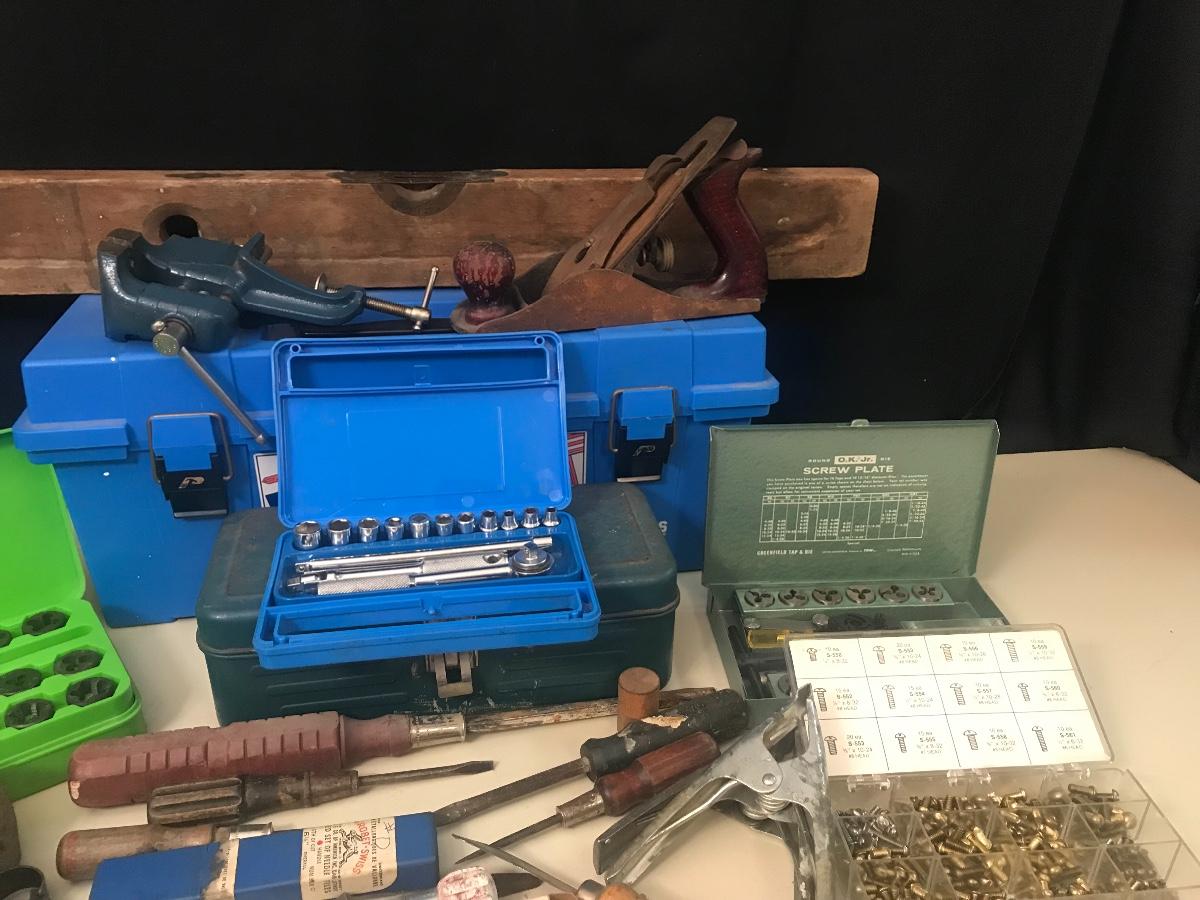 Lot 89: Vintage Tools - Level, Lathe, Leather Working & More