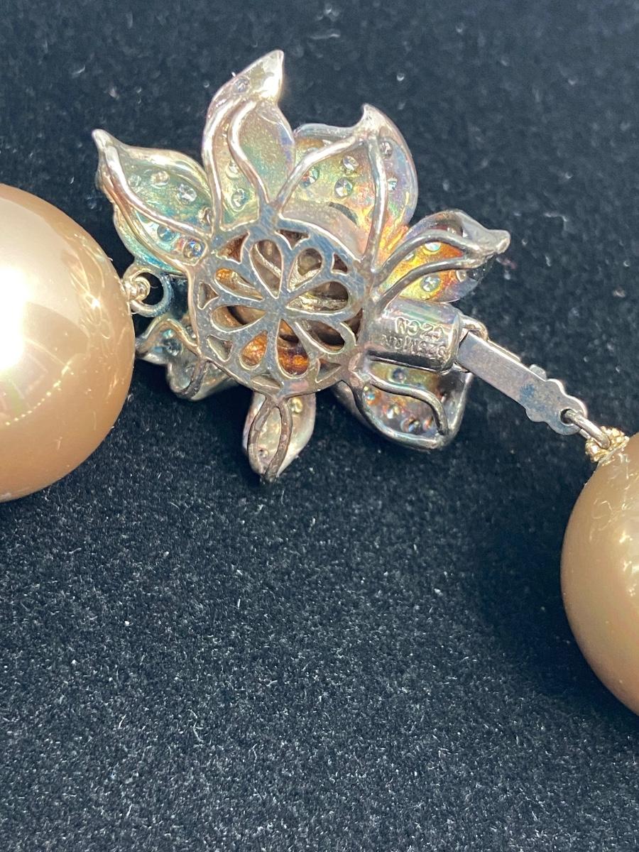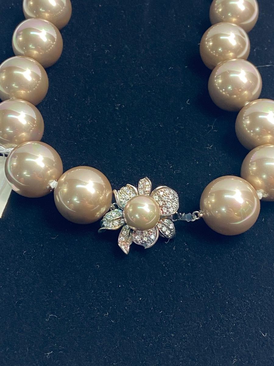 Lot 89: QVC Cultured Pearl Necklace w/Floral Sterling Clasp