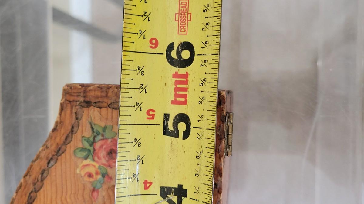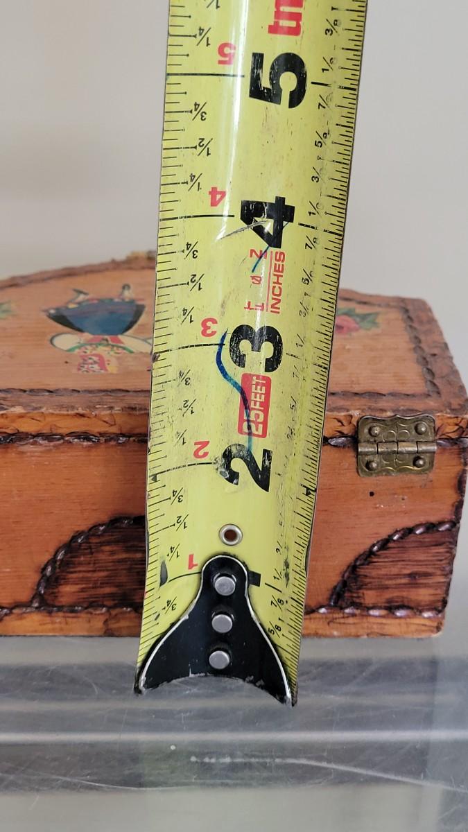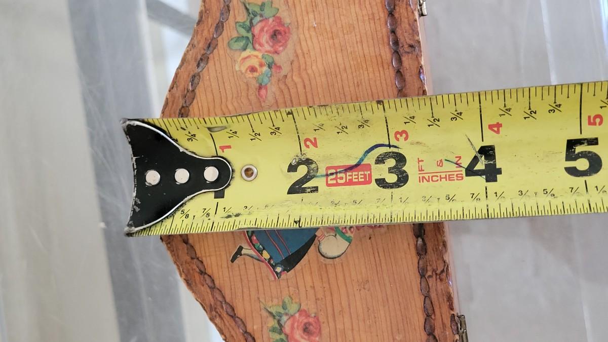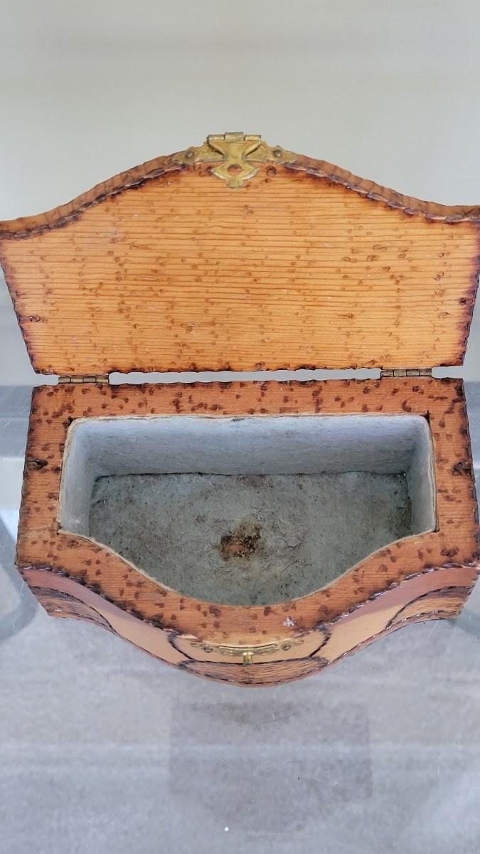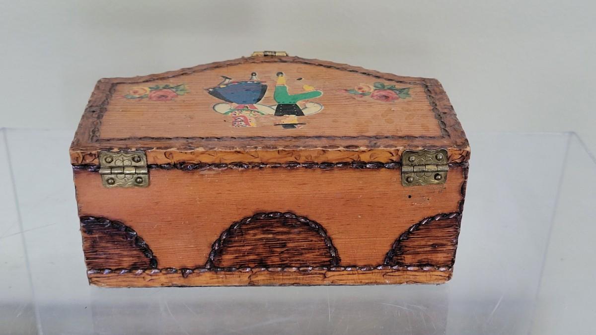 Lot 89: Vintage Chased Wood Trinket Box with Dancing Couple and Flowers Transfers