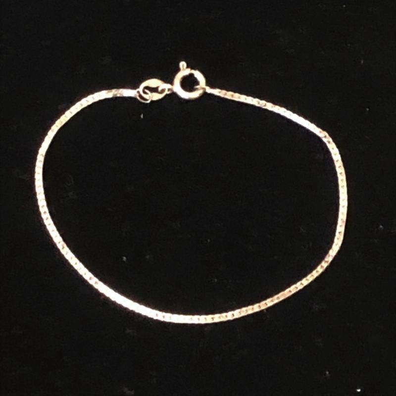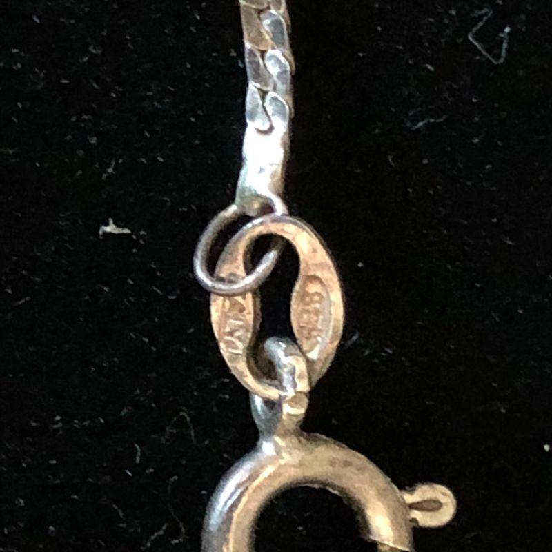 The clasp on this bracelet is marked .925 Italy. The bracelet is in excellent condition, but could use polishing. It is very delicate and just over 6" in length.