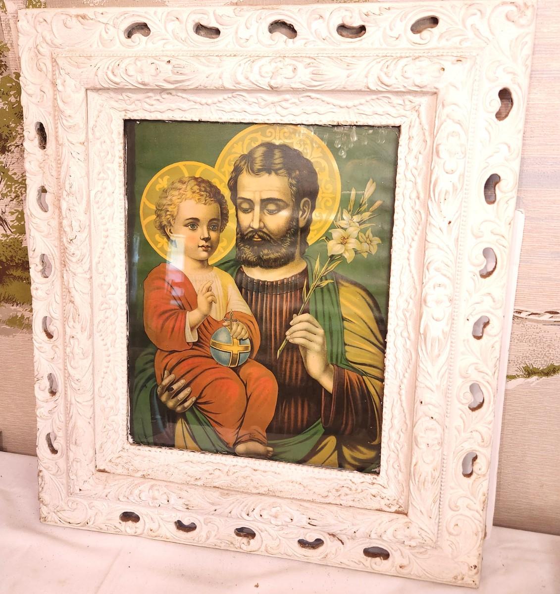 Lot #89 Antique Color Lithograph in Original frame - St. Joseph and the Christ Child