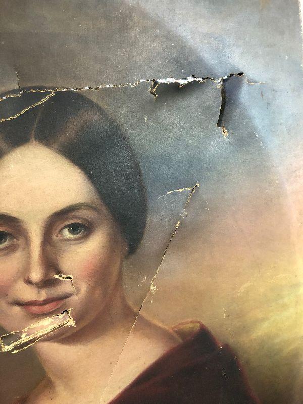 Lot #89 ANTIQUE Painting (Female) 1861 Mrs. Theodoria H. Shane