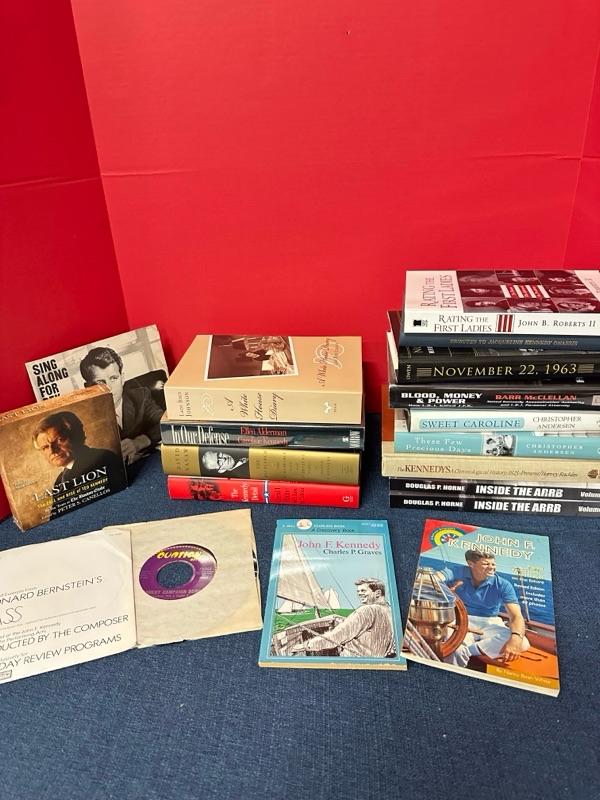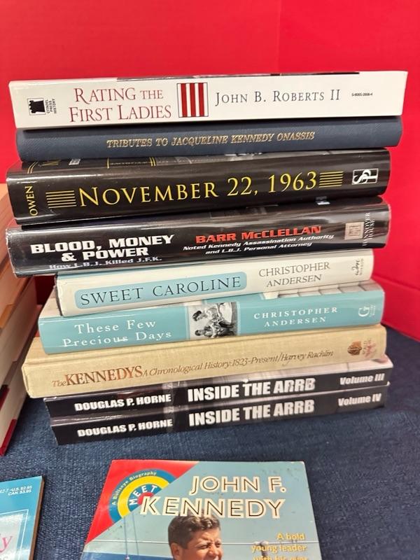 Collection of Kennedy books and media the four books in the left column are signed by the author