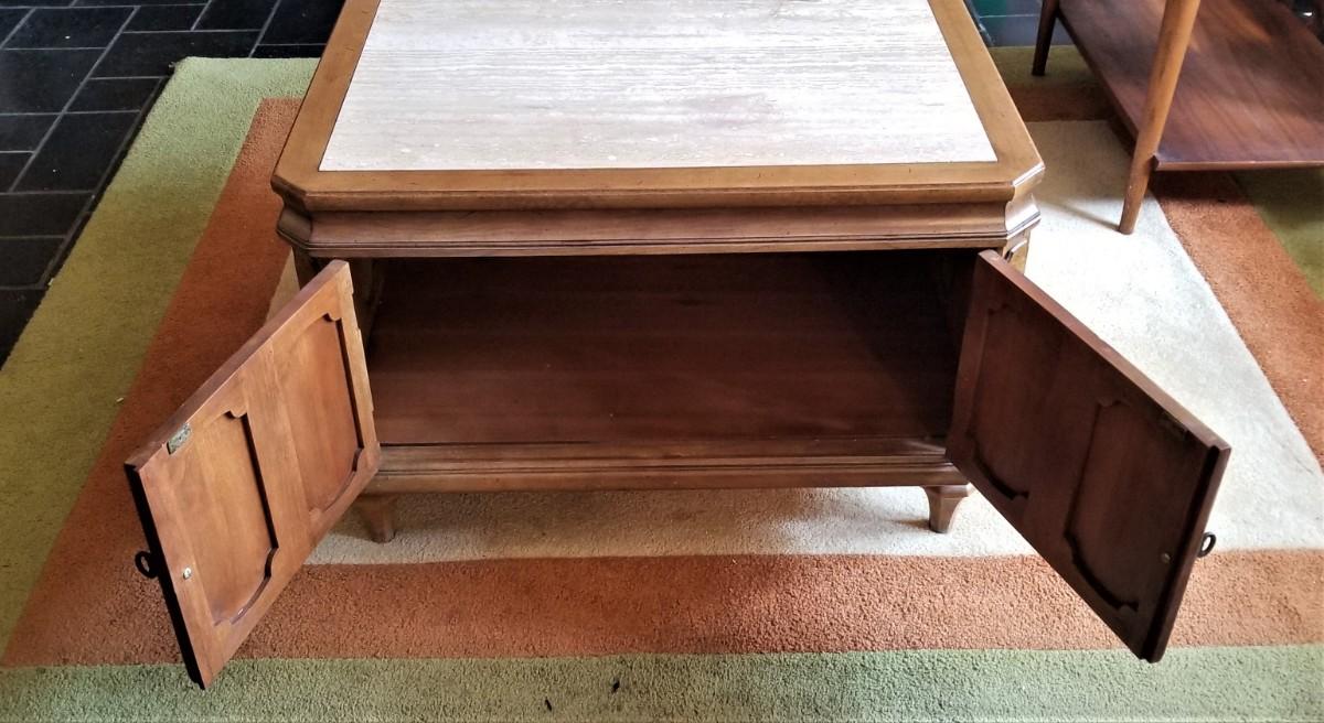Lot #89  Early 70's marble top Coffee or Lamp Table w/storage