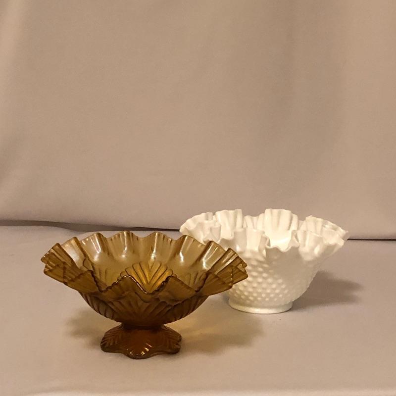 These 2 lovely Fenton Glass bowls/candy dishes work nicely as a pair or will make great gifts for those special people in your life. Shipping available.
