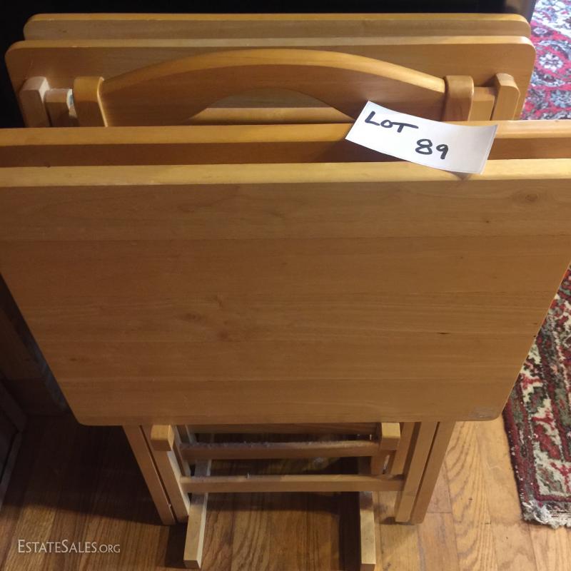 Four solid wood folding TV tables with stand