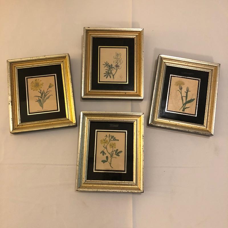 This lot includes four original Old Hand Colored flower prints in Gilt frames. This collection of art pieces would beautifully decorate any space in your home.