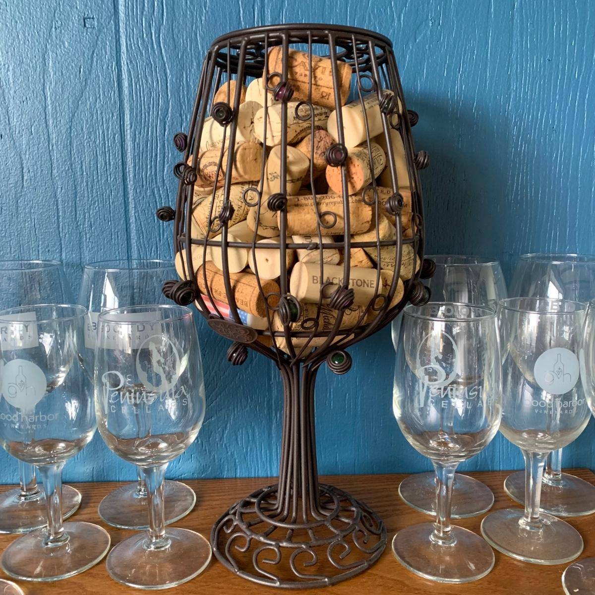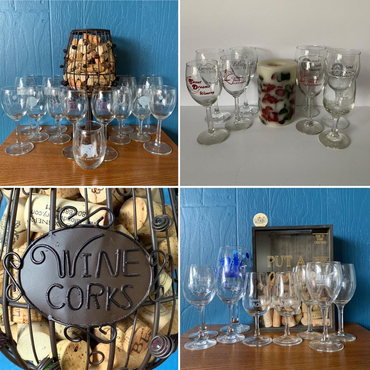 LOT 89 G: Uncork It Collection: Wine Glasses, Cork Holders & Rose Petal Infused Candle