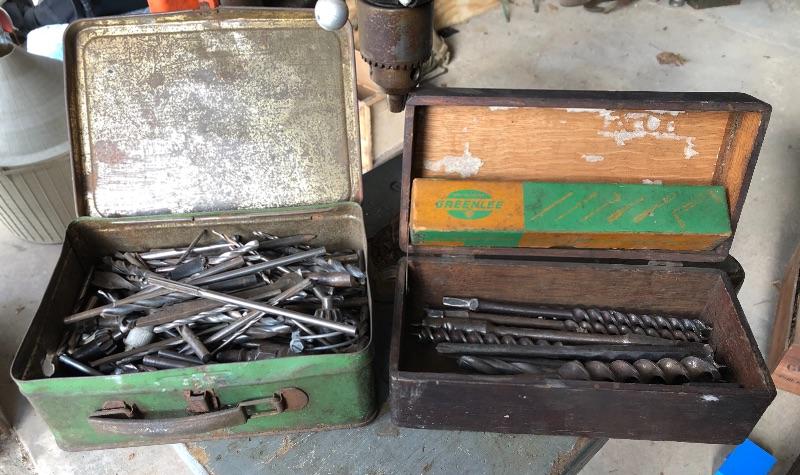 Lot 89 G: Vintage Delta drill press with two boxes of bits