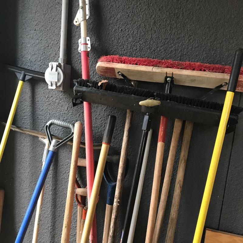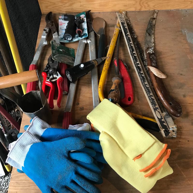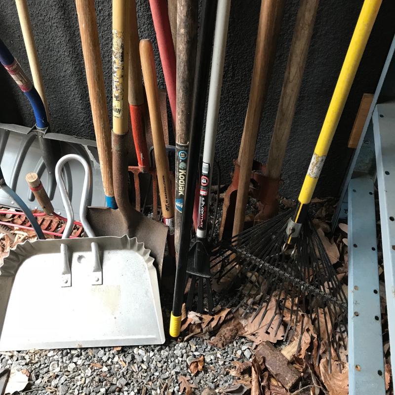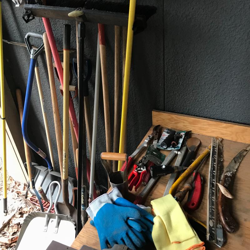 Large and small garden and shop tools to include, true temper wheel barrow, post hole digger, takes, brooms, snow shovel, extension saw, shovel, clippers, hand saws and more. Lot is available for local pick up in Asheville, NC only.