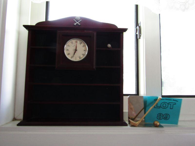 LOT 89  GOLF BALL DISPLAY SHELF WITH CLOCK & NOTE HOLDER