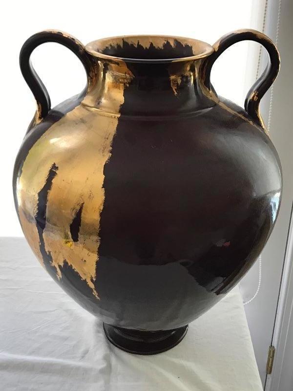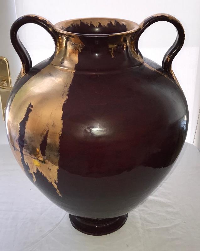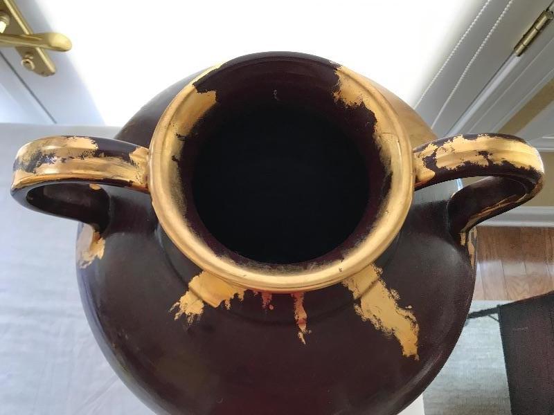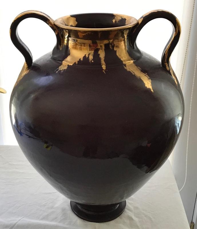 Lot #89 Large Dark Red Raku Pottery Vase with Gold Leaf Accent