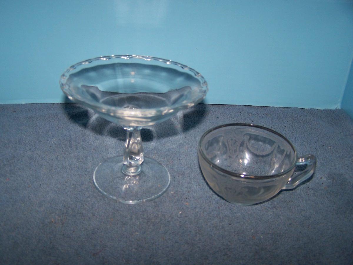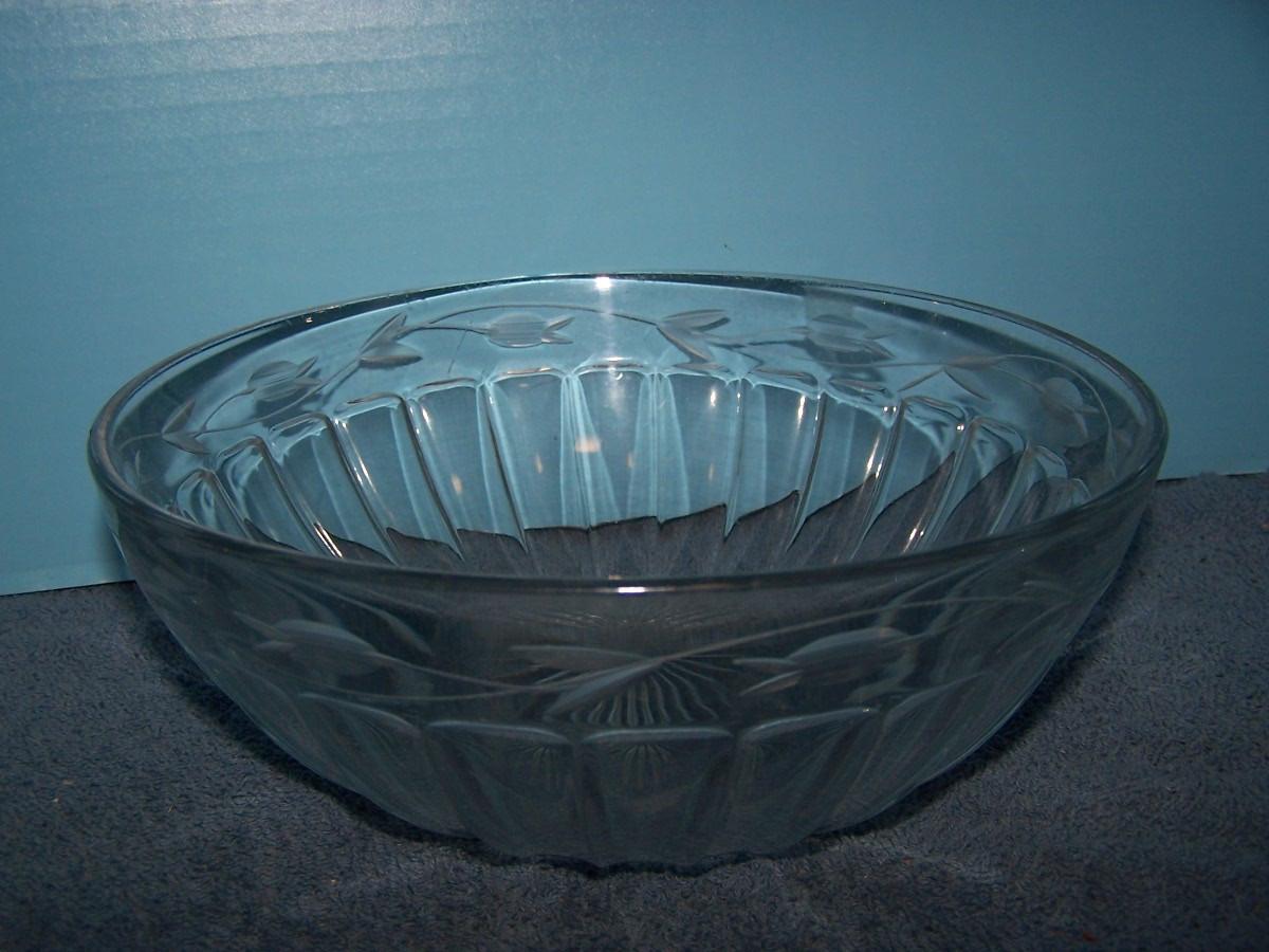 THIS IS LOVELY VINTAGE GLASSWARE! BOWL HAS SCRATCHES, OTHERWISE, LIGHT WEAR..