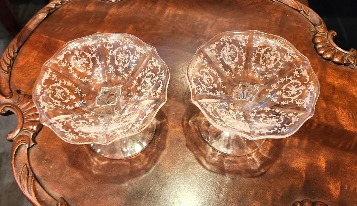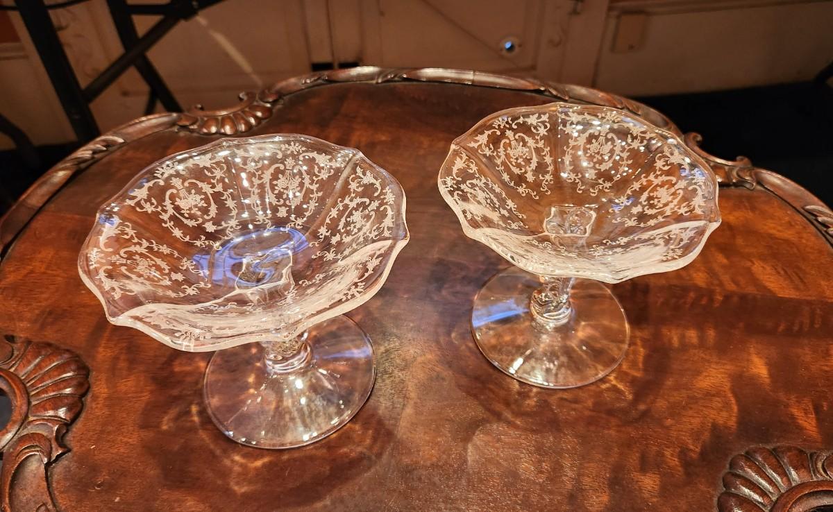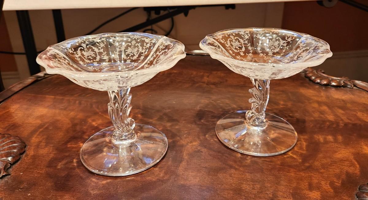 Lot #89  Pair Vintage Fostoria Crystal Compotes in the "Navarre" pattern