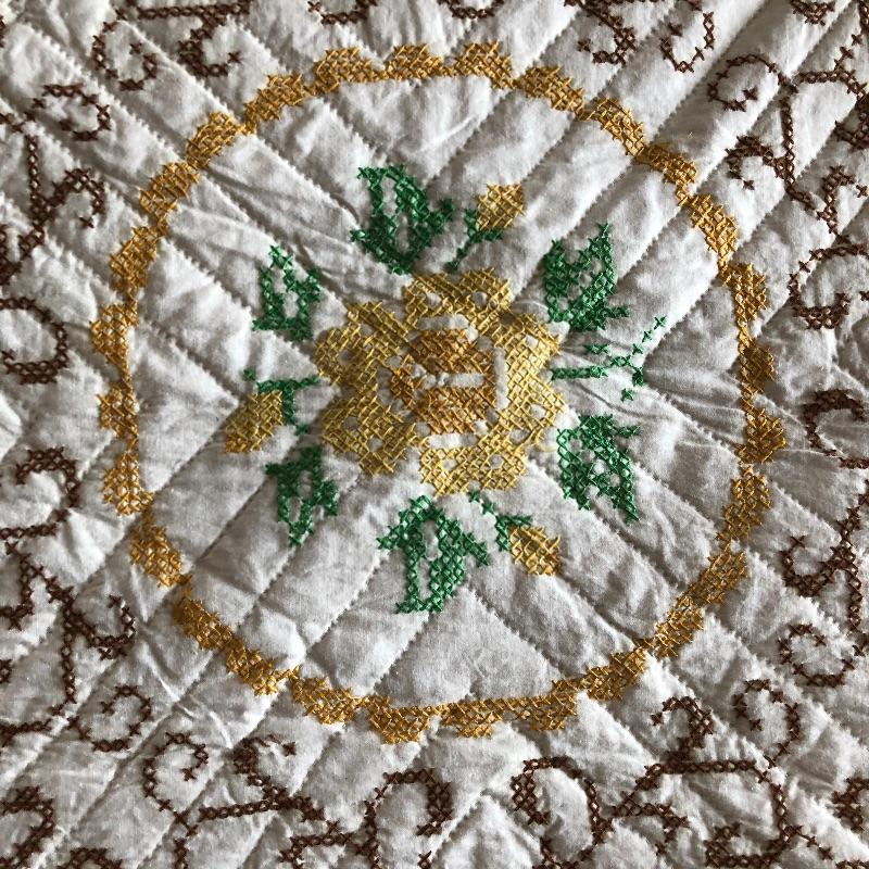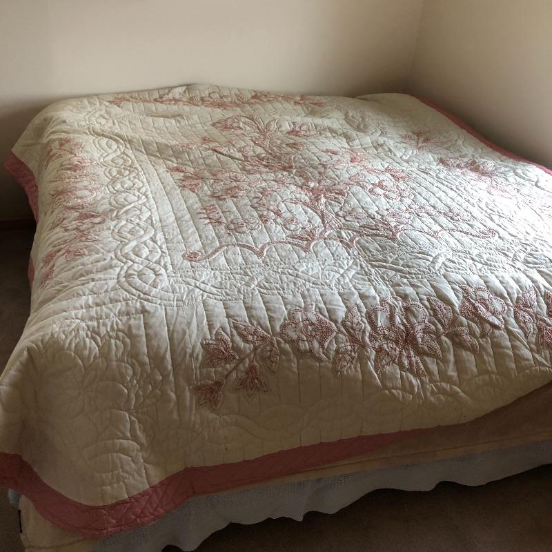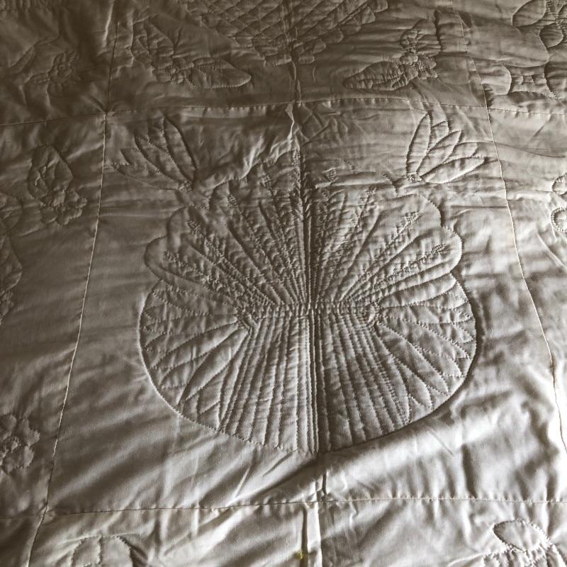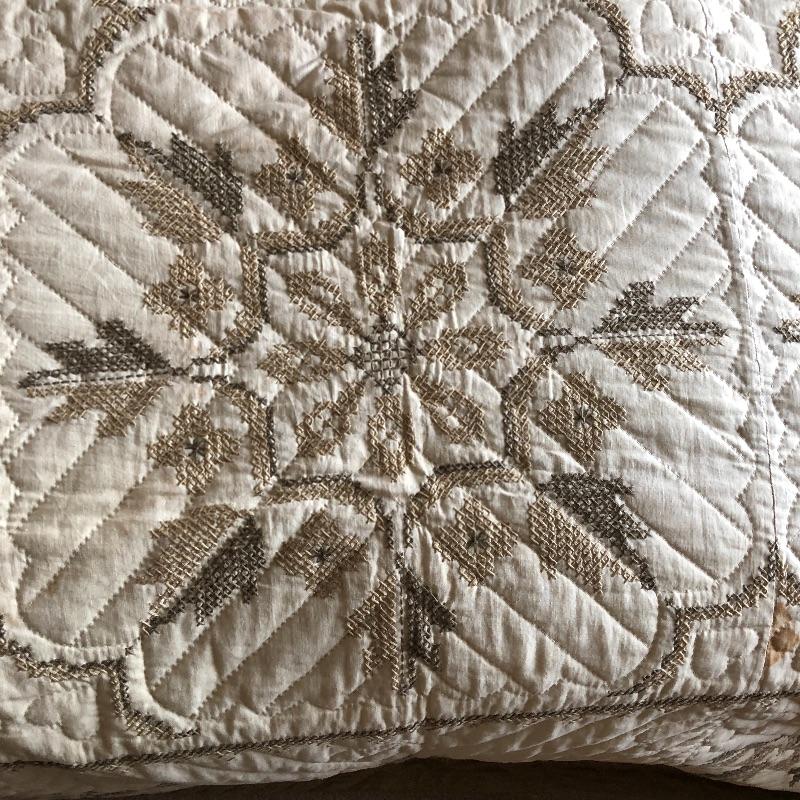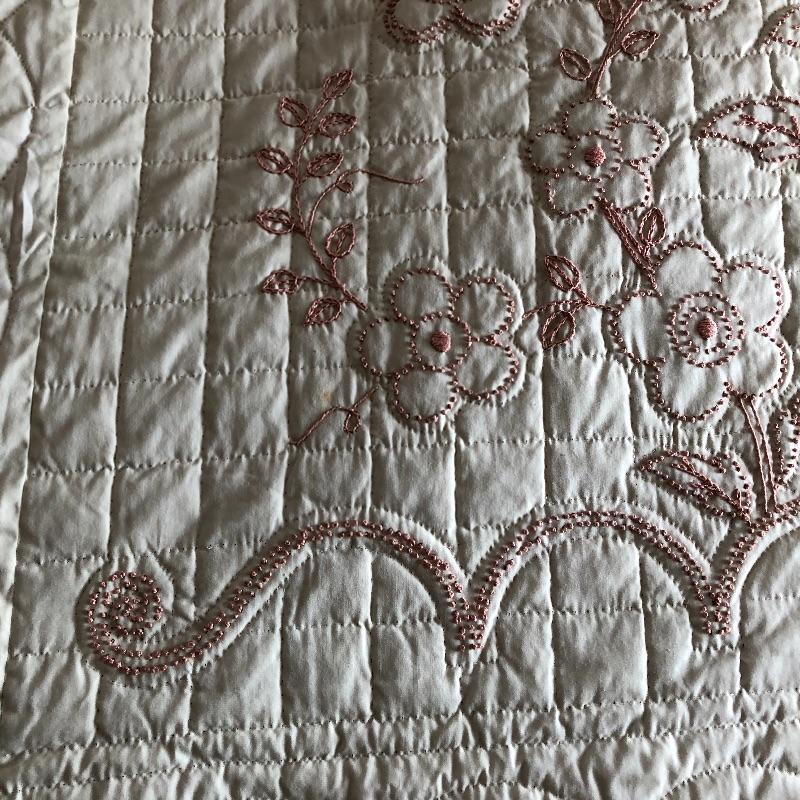 These quilts are so beautiful you might just want to display them. Lot includes five handmade quilts. One quilt has French knots and some of the others have cross stitch on top of the quilting and one has matching pillow, see pictures. Largest quilt measures 110” x 110”.