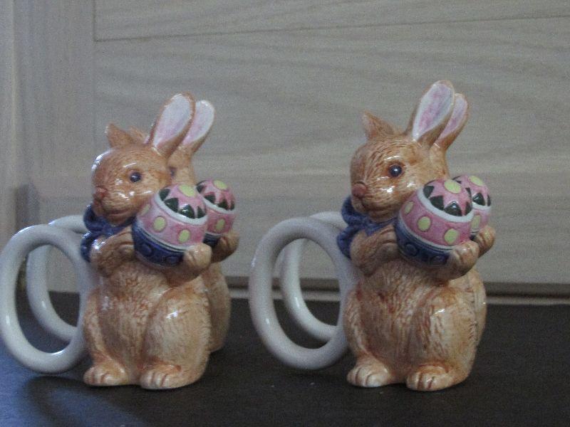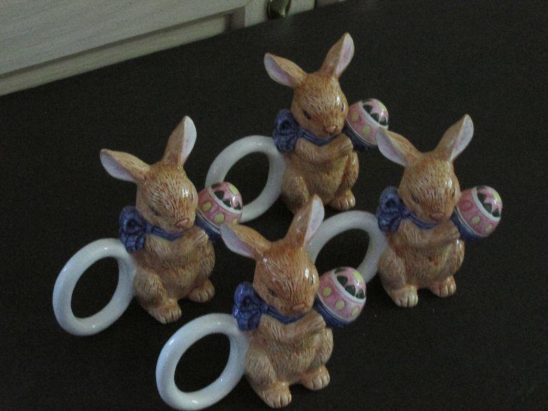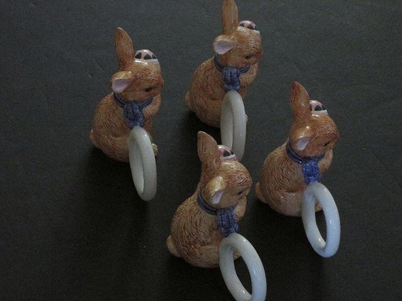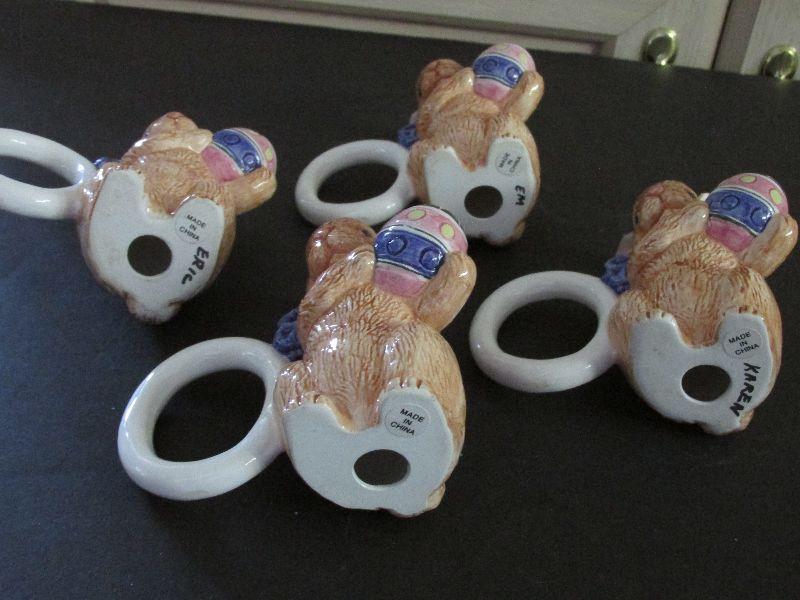 Rabbit designed napkin rings. in good condition but marked on the bottom with family names.