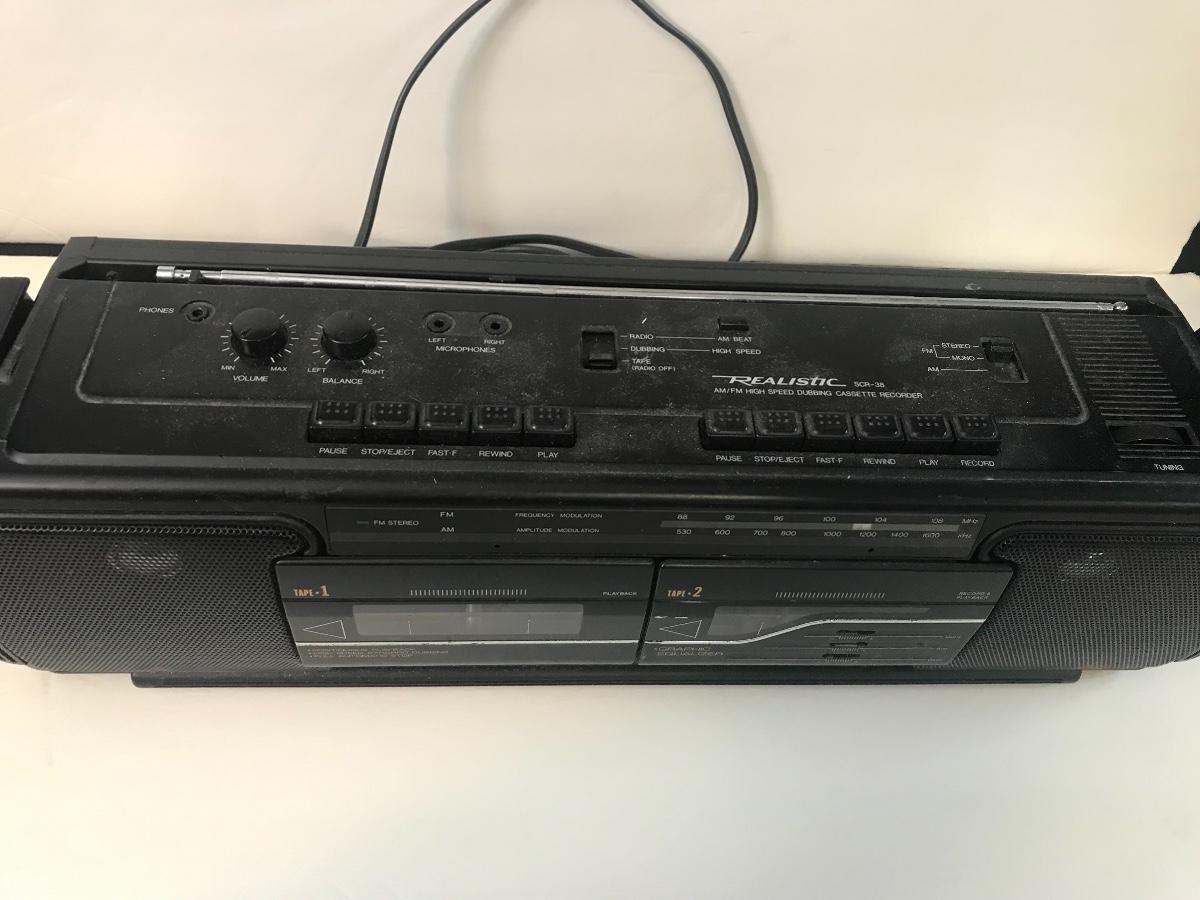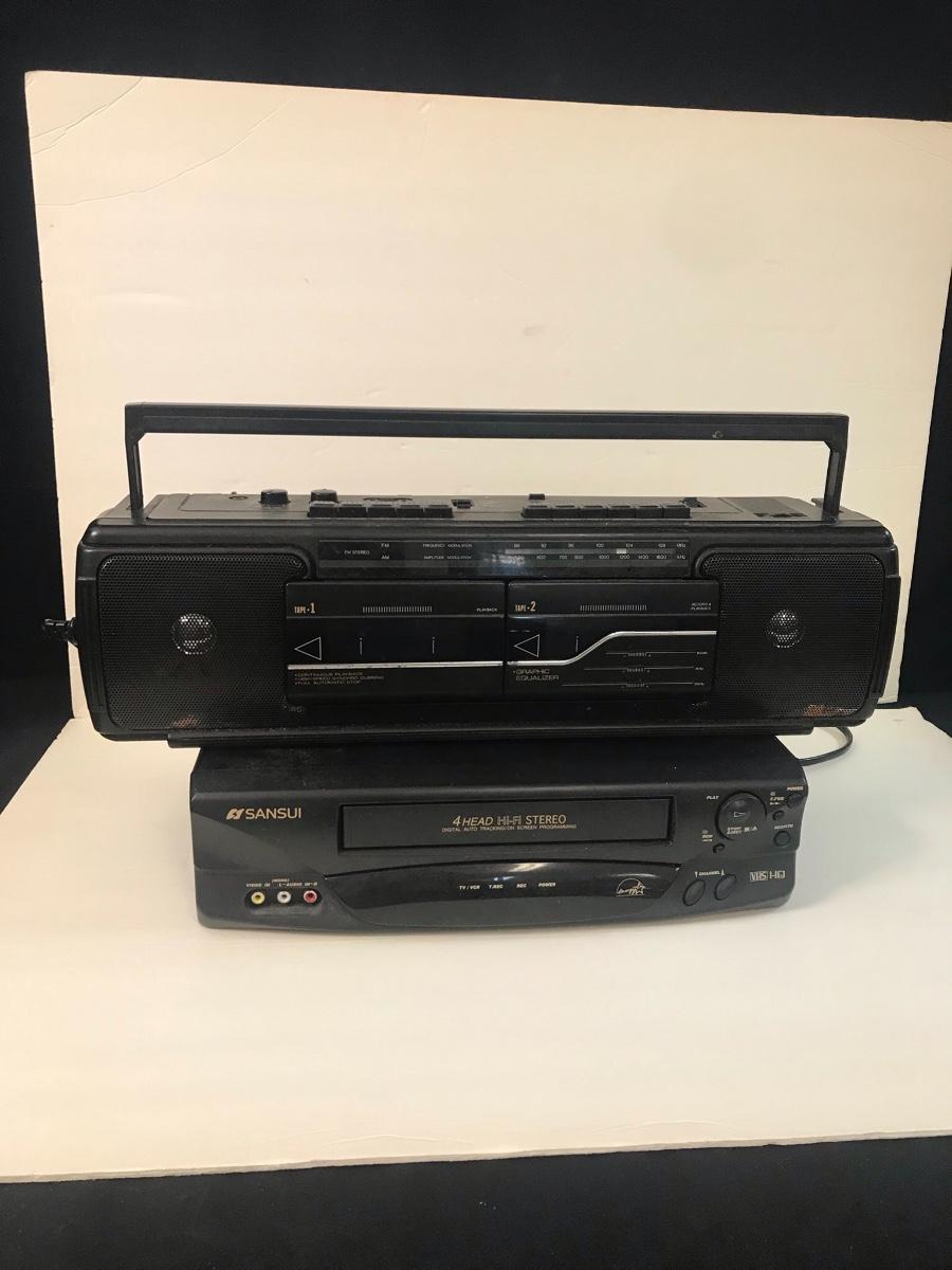 Retro Electronics - Sansui VCR & Realistic Dual Tape Deck Boom Box. Both Items powered on and radio played, but both are otherwise untested. Please see all pictures as they are the best representation of the items. The pictures show condition, measurements if taken, and what is included in the lot. Due to the large amount that we photograph and the time frame, we are not always able to take measurements. All items unless noted, are pre-owned and have been used. If you purchased furniture, you must bring help. We do not allow one person to carry large furniture out on their own. Bring help, tools and a truck for the safety of our client’s homes, and your personal safety. Company policy. Thank you.