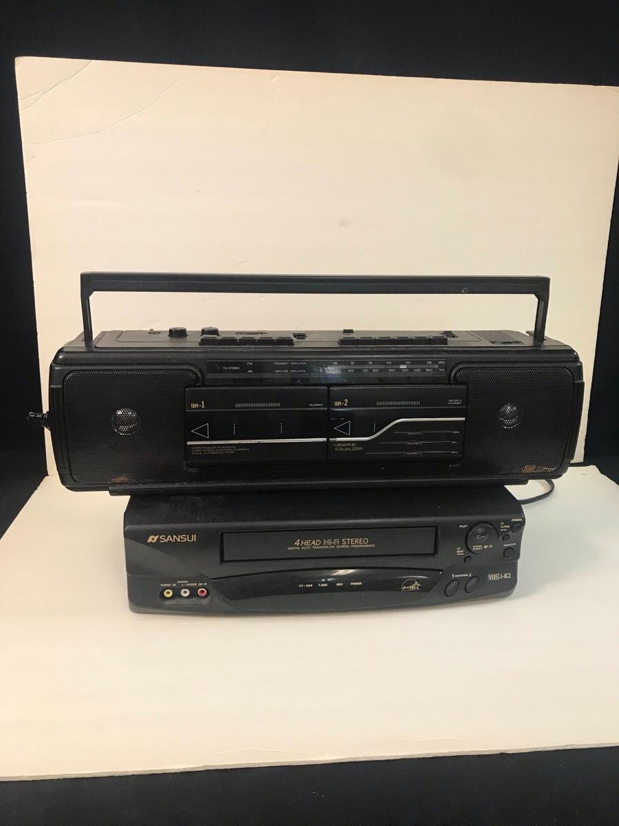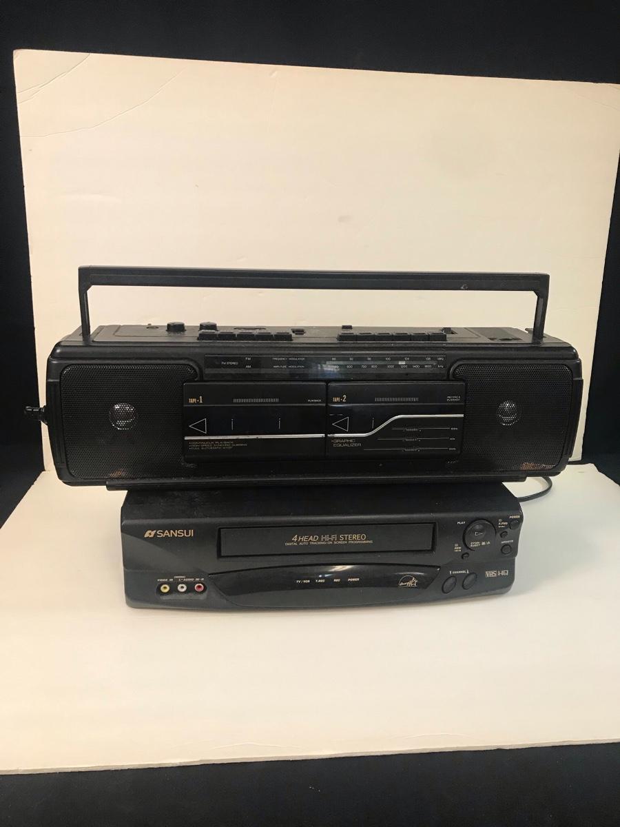 Lot 89: Retro Electronics - Sansui VCR & Realistic Dual Tape Deck Boom Box