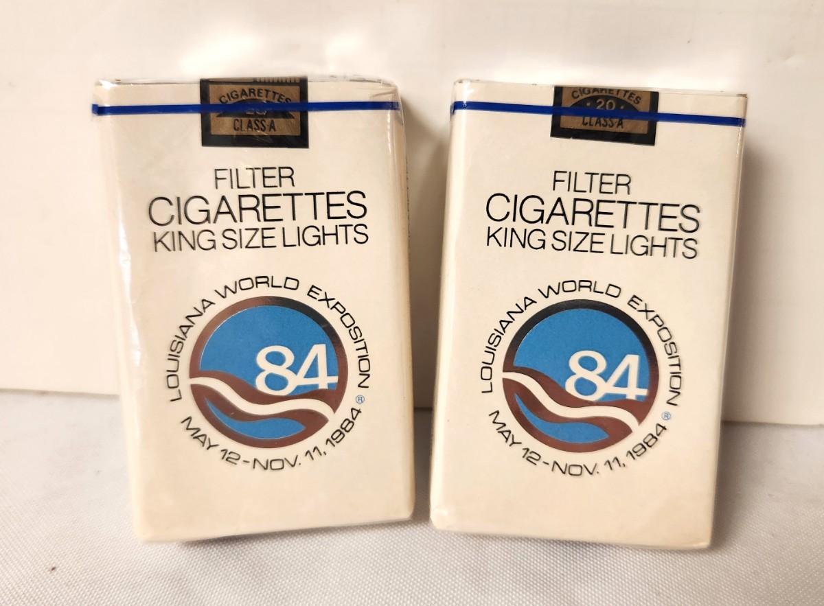 2 packages King Size Lights 1984 World's Fair Cigarettes - sealed/unopened. Scarce.