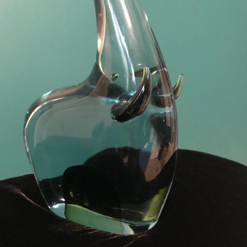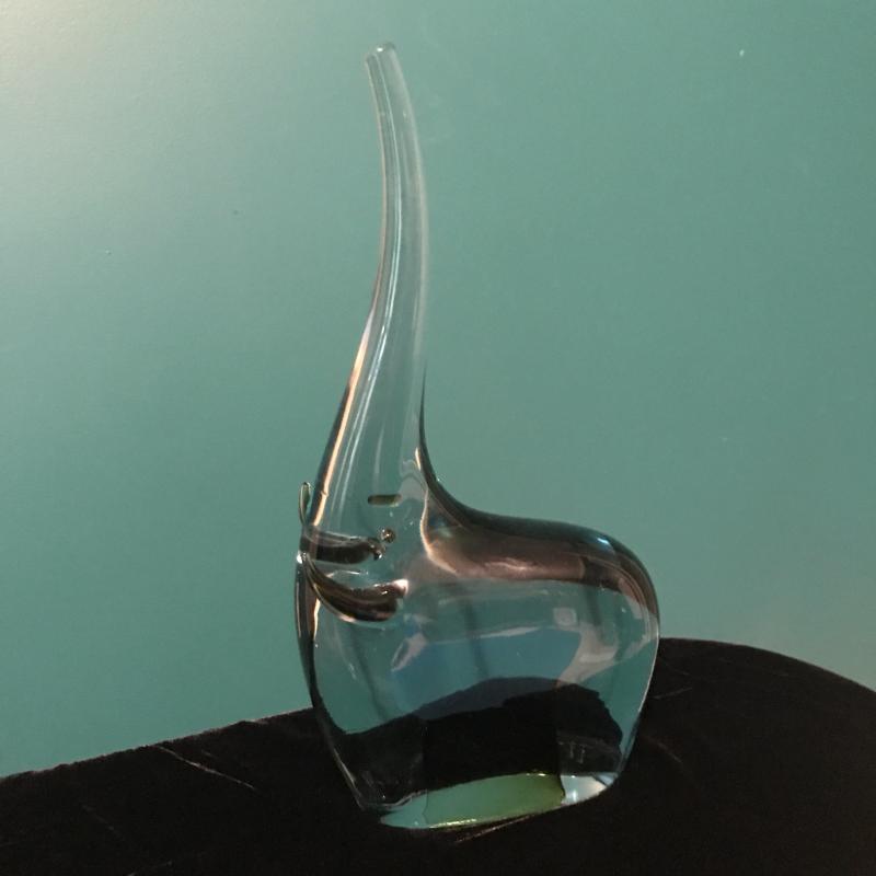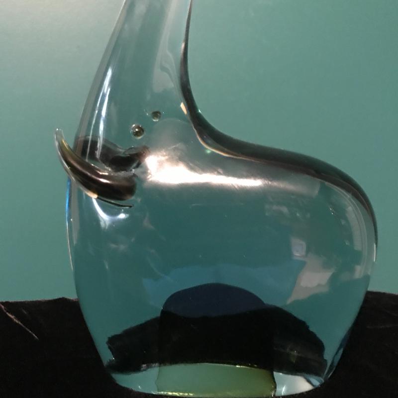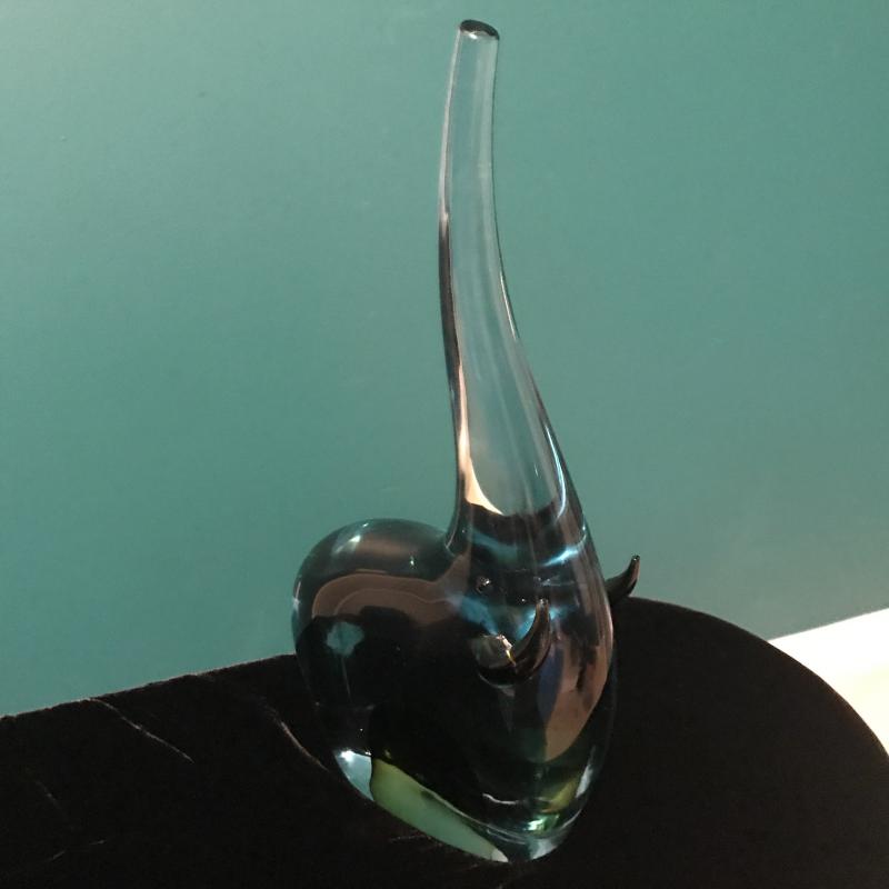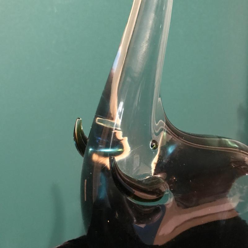 Signed Murano Cenedese Heavy Glass Elephant. Very elegant design with blue tinted glass. Measures 7” x 3” x 13.5”h. A few scratches on bottom of piece by signature but no noticable marks on elephant. Shipping available.