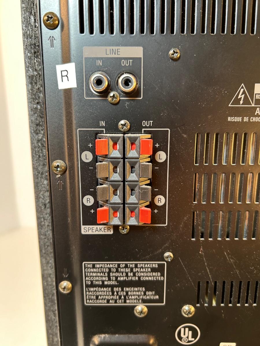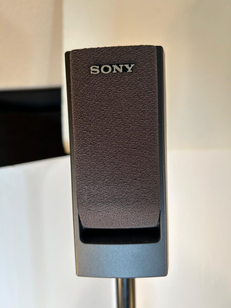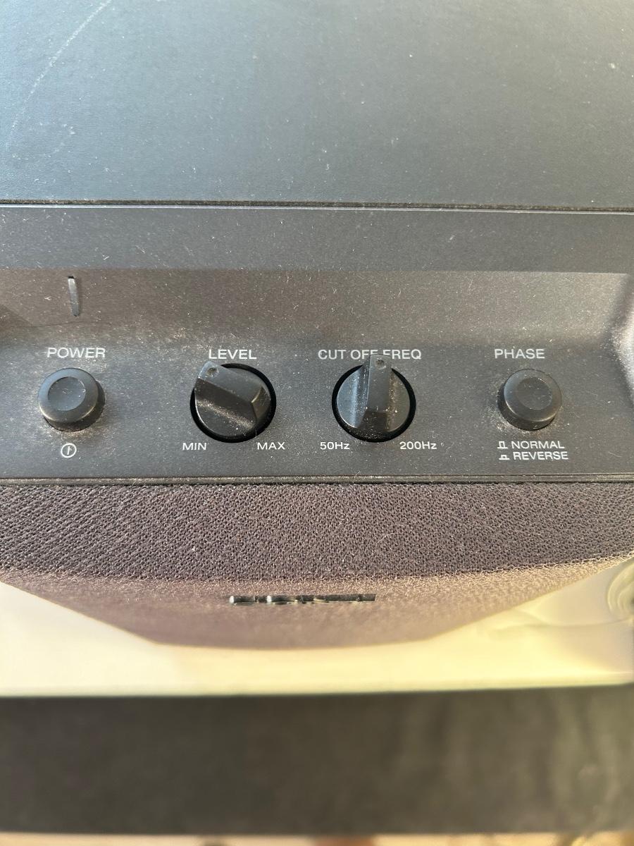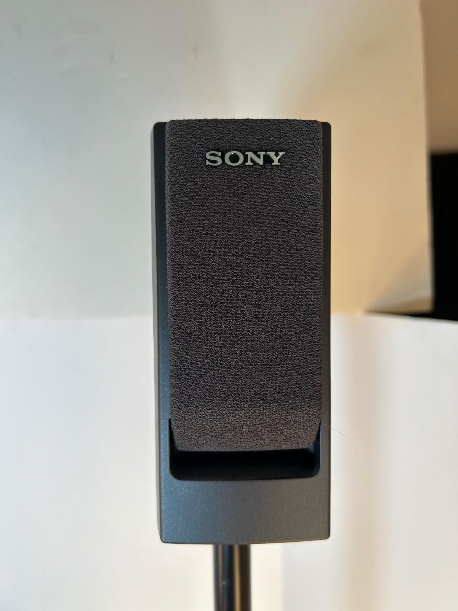 Includes Sony SA-W303 Super Acoustically Loaded Woofer, Sony Speaker System Model No. SS-CN130 & a pair of Sony Speakers Model No. SS-V130 on stands that are 40”H