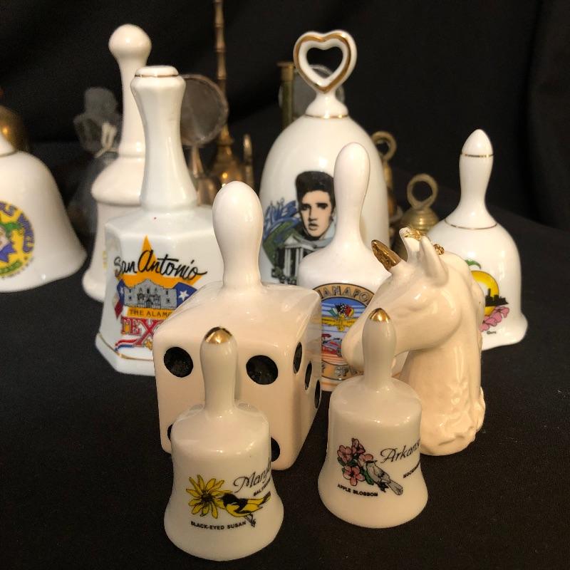 More than thirty bells in this special collection. From a unicorn to Elvis, made of metal, glass, porcelain and ceramic, there is a wide range of themes for your collection. Sizes range from 2-7 inches.