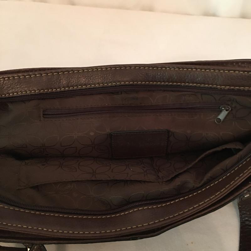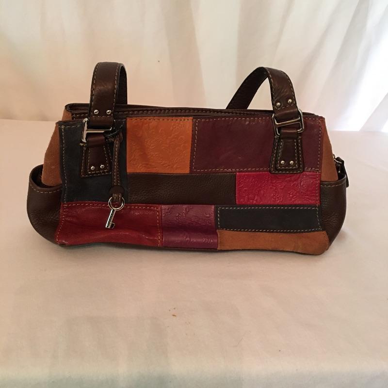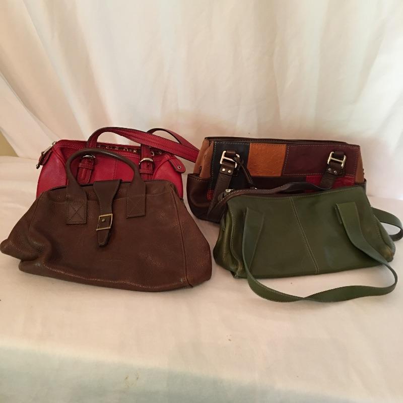 This lot has a leather Fossil and Tignanello purse and two more Fossil purses with unnamed material. Be ready for stylish outings or the work week with this selection of purses. Largest purse measures 5” x 14” x 7.5”.
