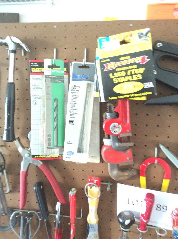 hammers, stapler, screw drivers, scissors, drill bits, and etc.
