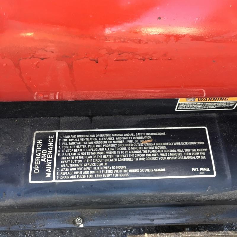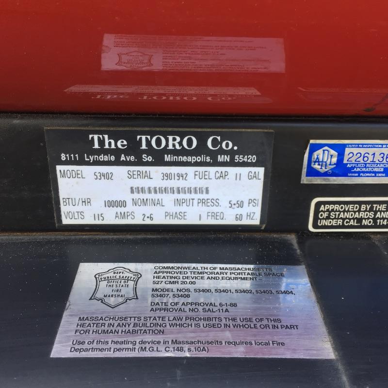 Toro Porto-Heat Kerosene heater model # 53402. Get ready for the winter with this handy Toro portable heater. Heater worked when plugged in.