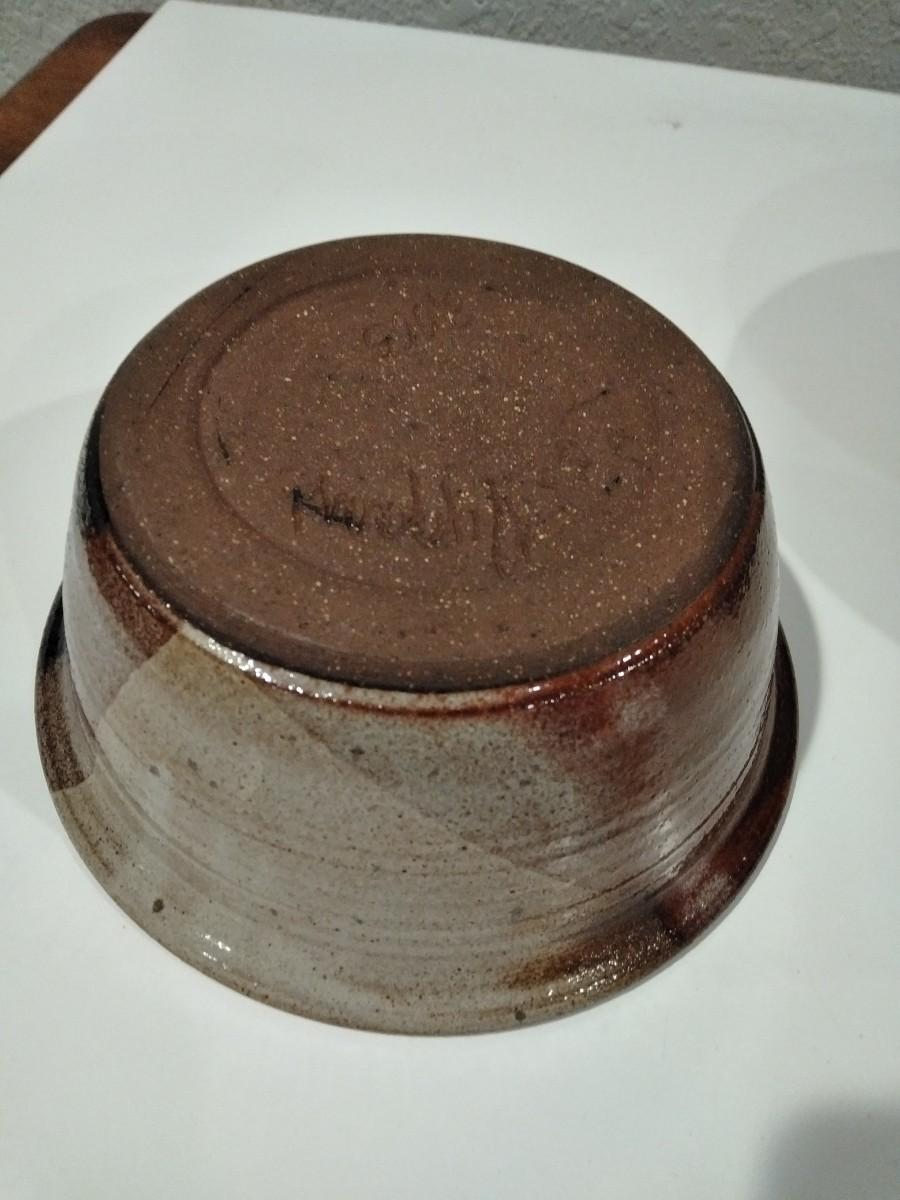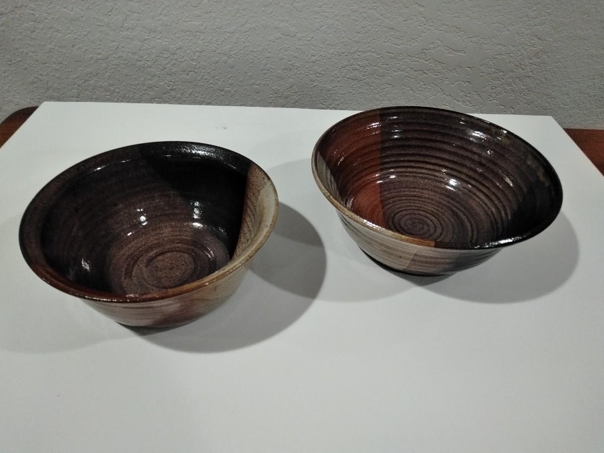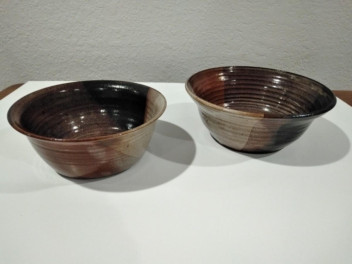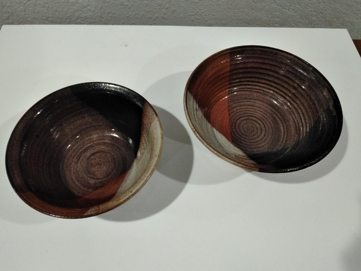 TWO CLAY POTTERY BOWLS, SIGNED BY MAKER ON BASE.